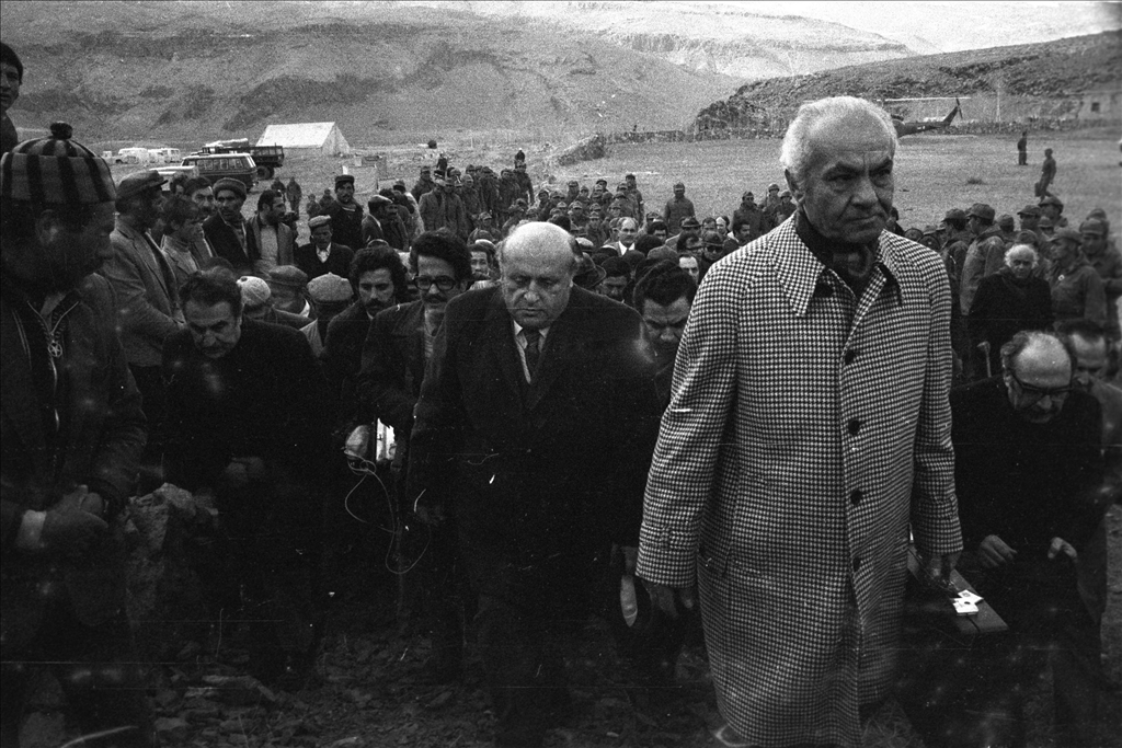 Van'ın Muradiye ilçesine bağlı Çaldıran beldesinde 24 Kasım 1976'da meydana gelen 7,5 büyüklüğündeki depremde 3 bin 840 kişi yaşamını yitirdi, 9 bin 232 bina hasar gördü. Dönemin Başbakanı Süleyman Demirel (sağ2), deprem bölgesinde incelemelerde bulunmuştu. (Arşiv)