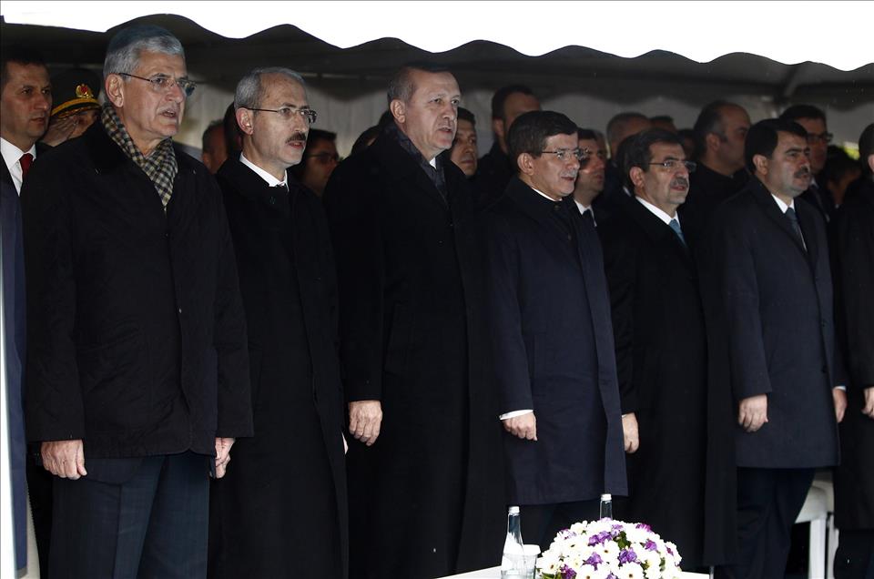 Levent-Rumeli Hisarüstü Metro Hattı'nın açılış töreni Etiler İstasyonu çıkışındaki alanda gerçekleşti. Törene Cumhurbaşkanı Recep Tayyip Erdoğan (sol3), Başbakan Ahmet Davutoğlu (sağ3), Ulaştırma, Denizcilik ve Haberleşme Bakanı Feridun Bilgin (sol2), Avrupa Birliği Bakanı Volkan Bozkır (solda) Çevre ve Şehircilik Bakanı İdris Güllüce (sağ2) ve İstanbul Valisi Vasip Şahin (sağda) katıldı. (Bülent Doruk - Anadolu Ajansı)Bülent Doruk