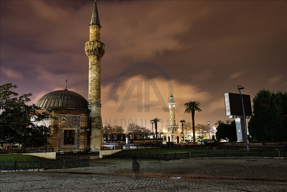 Yeni tip koronavirüs (Kovid-19) salgınıyla mücadele kapsamında Türkiye genelinde 4 Ocak Pazartesi günü saat 05.00'te sona erecek sokağa çıkma kısıtlaması saat 21.00 itibarıyla başladı. İzmir’de kısıtlamanın başlamasının ardından cadde ve sokaklar sessizliğe büründü. Tarihi Saat Kulesi'nin de bulunduğu Konak Meydanı'nın sokağa çıkma kısıtlaması nedeniyle boş kaldığı görüldü. ( Mehmet Emin Mengüarslan - Anadolu Ajansı )Mehmet Emin Mengüarslan