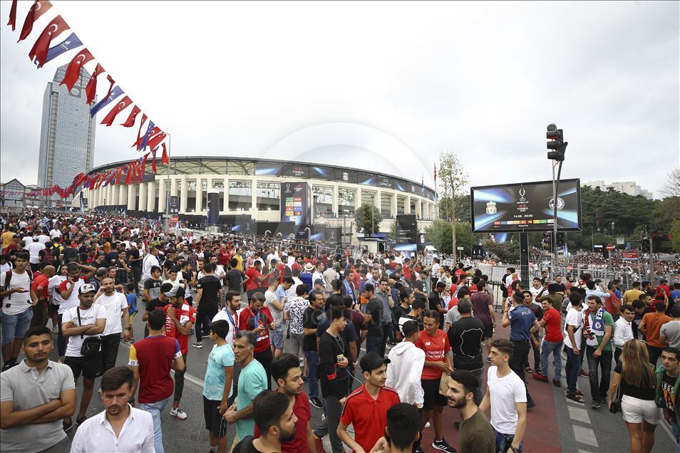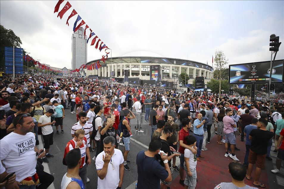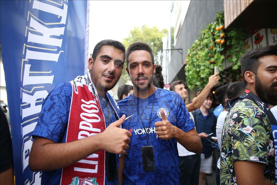 Liverpool ve Chelsea takımları arasında oynanacak UEFA Süper Kupa final maçı öncesi taraftarlar, maçın oynanacağı Vodafone Park etrafında toplanmaya başladı. ( Serhat Çağdaş - Anadolu Ajansı )Serhat Çağdaş