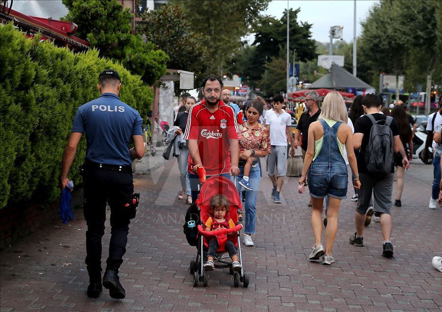 Liverpool ve Chelsea takımları arasında oynanacak UEFA Süper Kupa maçı öncesi taraftarlar, maçın oynanacağı Vodafone Park etrafında toplanmaya başladı. ( Serhat Çağdaş - Anadolu Ajansı )Serhat Çağdaş