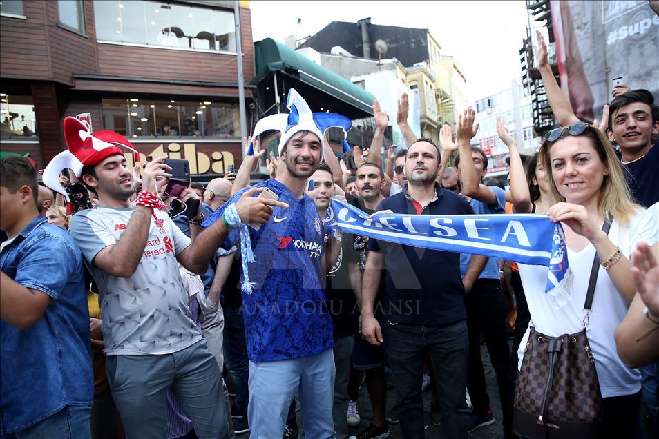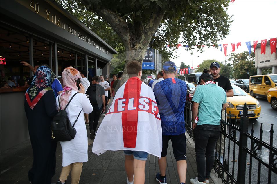 İngiltere takımları Liverpool ve Chelsea arasında oynanacak UEFA Süper Kupa final maçı öncesinde iki takım taraftarları, Beşiktaş'ta toplanmaya başladı. Taraftarların toplanma alanlarında polisin güvenlik önlemi aldığı görüldü. ( İsa Terli - Anadolu Ajansı )İsa Terli