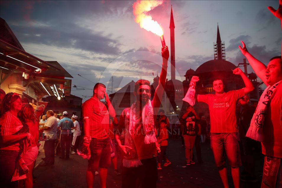 İngiltere takımları Liverpool ve Chelsea arasında oynanacak UEFA Süper Kupa maçı öncesinde bazı Liverpool taraftarları, Taksim Meydanı ve çevresinde toplandı. ( Muhammed Enes Yıldırım - Anadolu Ajansı )Muhammed Enes Yıldırım