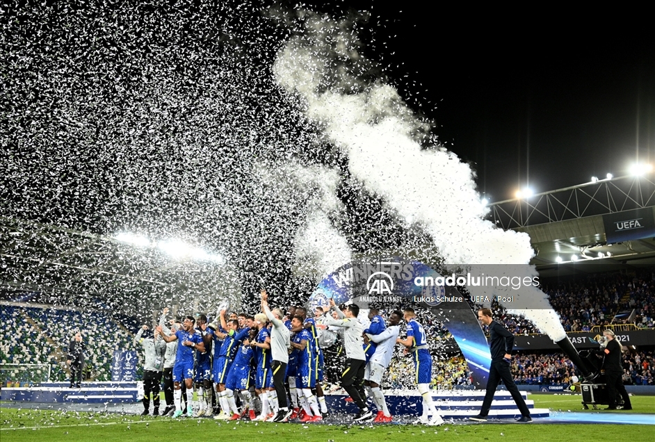 46. UEFA Süper Kupa maçında Chelsea ile Villarreal takımları Kuzey İrlanda'nın başkenti Belfast'taki Windsor Park'ta karşılaştı. Normal süresi ve uzatma bölümü 1-1 sona eren maçta Villarreal'e penaltı atışlarında 6-5 üstünlük sağlayan Chelsea, şampiyon oldu. ( Lukas Schulze - UEFA / Pool - Anadolu Ajansı )Lukas Schulze - UEFA / Pool