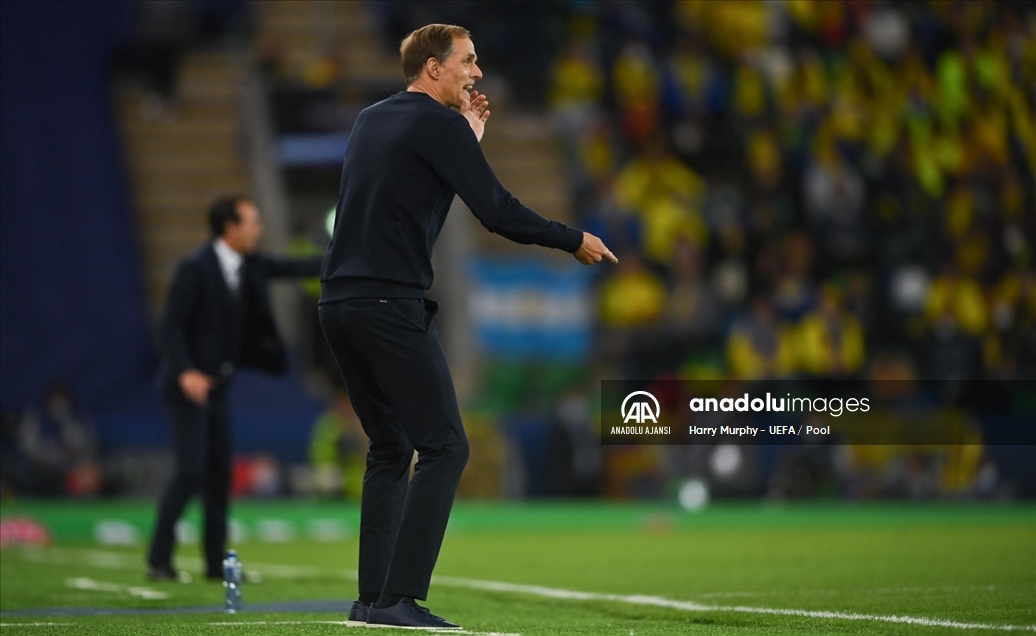 46. UEFA Süper Kupa maçında Chelsea ile Villarreal takımları Kuzey İrlanda'nın başkenti Belfast'taki Windsor Park'ta karşılaştı. Chelsea teknik direktörü Thomas Tuchel, oyuncularına taktik verdi. ( Harry Murphy - UEFA / Pool - Anadolu Ajansı )Harry Murphy - UEFA / Pool