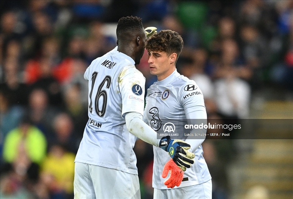 46. UEFA Süper Kupa maçında Chelsea ile Villarreal takımları Kuzey İrlanda'nın başkenti Belfast'taki Windsor Park'ta karşılaştı. Chelsea oyuncusu Kepa Arrizabalaga, takım arkadaşı Edouard Mendy'nin yerine oyuna girdi. ( Lukas Schulze - UEFA / Pool - Anadolu Ajansı )Lukas Schulze - UEFA / Pool