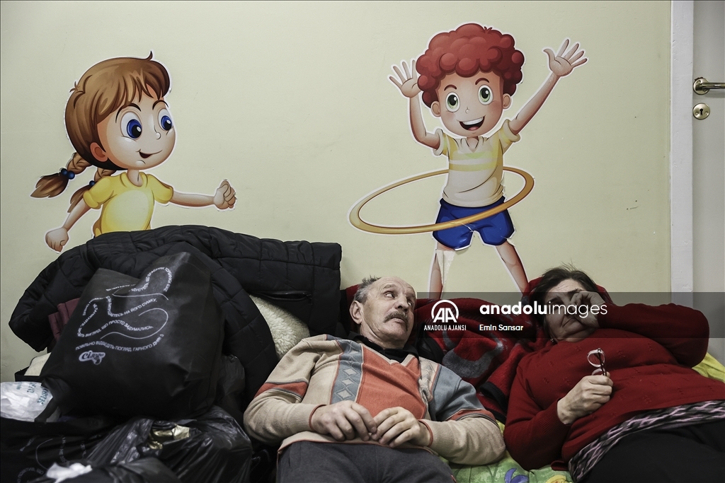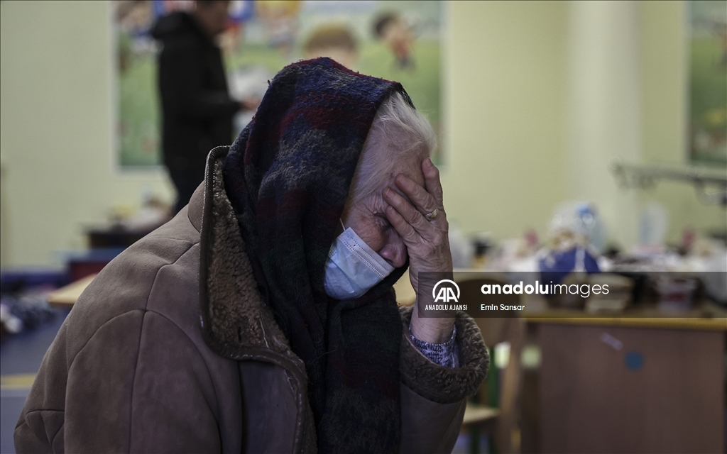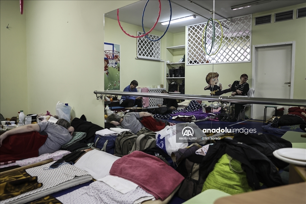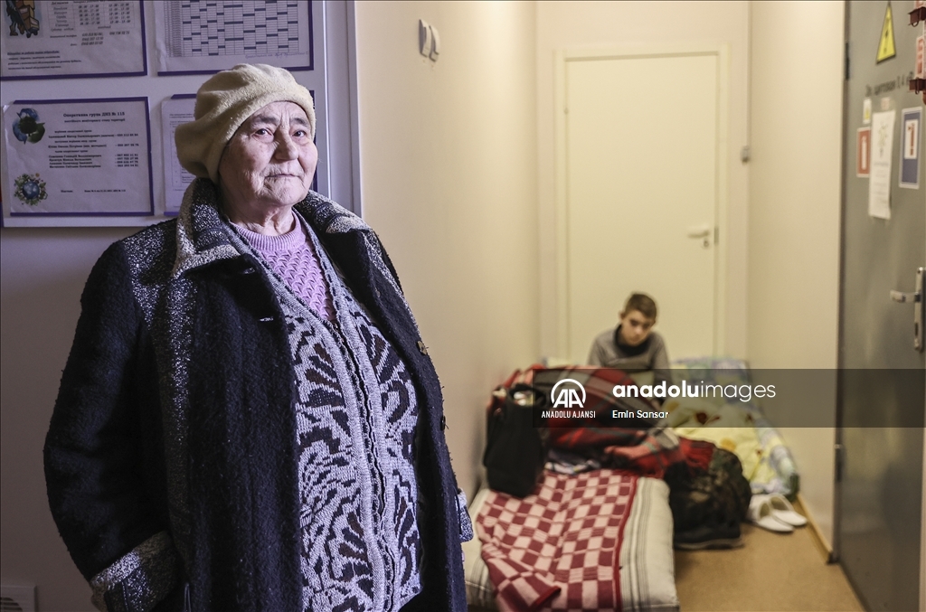 Rusya ile Ukrayna arasındaki savaş nedeniyle çatışma bölgelerinde yaşayan siviller evlerini terk etmek zorunda kalırken başkent Kiev yakınlarındaki bölgelerden tahliye edilen ve kalacak yerleri olmayan bazı siviller kentteki okullara sığınıyor.