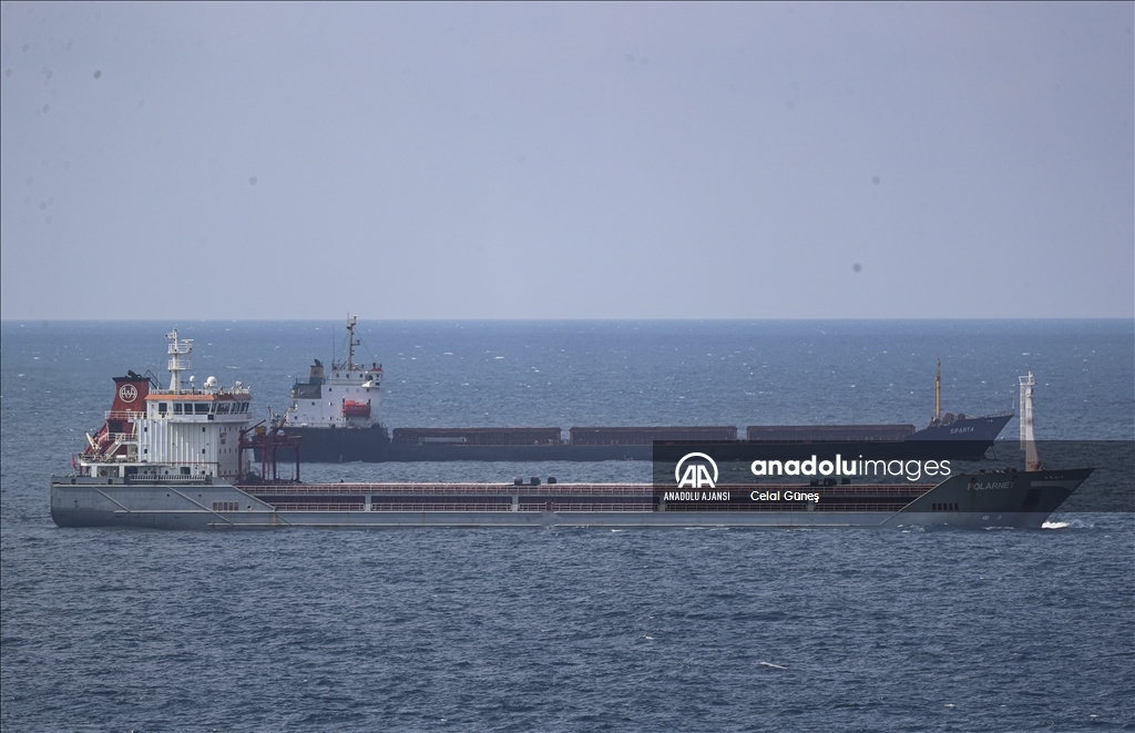 Ukrayna'dan gelen 12 bin ton mısır yüklü, Türk bayraklı "Polarnet" gemisi, İstanbul Boğazı'ndaki denetimin ardından Derince'ye hareket etti.