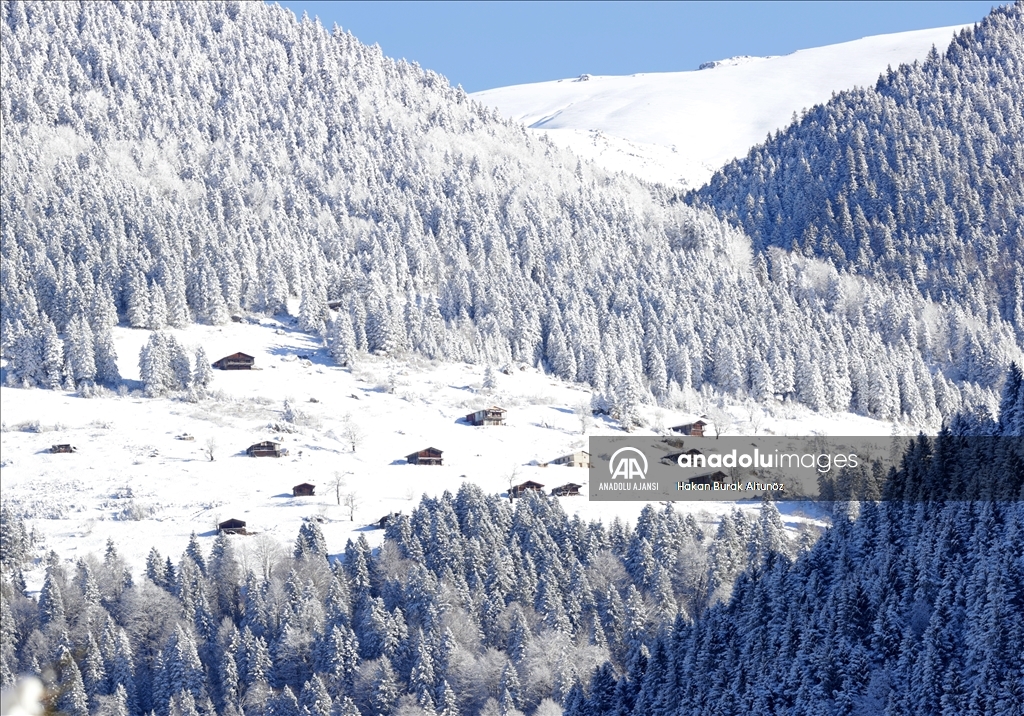 Türkiye'nin önemli turizm merkezlerinden Trabzon'un Çaykara ilçesindeki Uzungöl, kar yağışı sonrası beyaz örtüyle kaplandı. ( Hakan Burak Altunöz - Anadolu Ajansı )Hakan Burak Altunöz