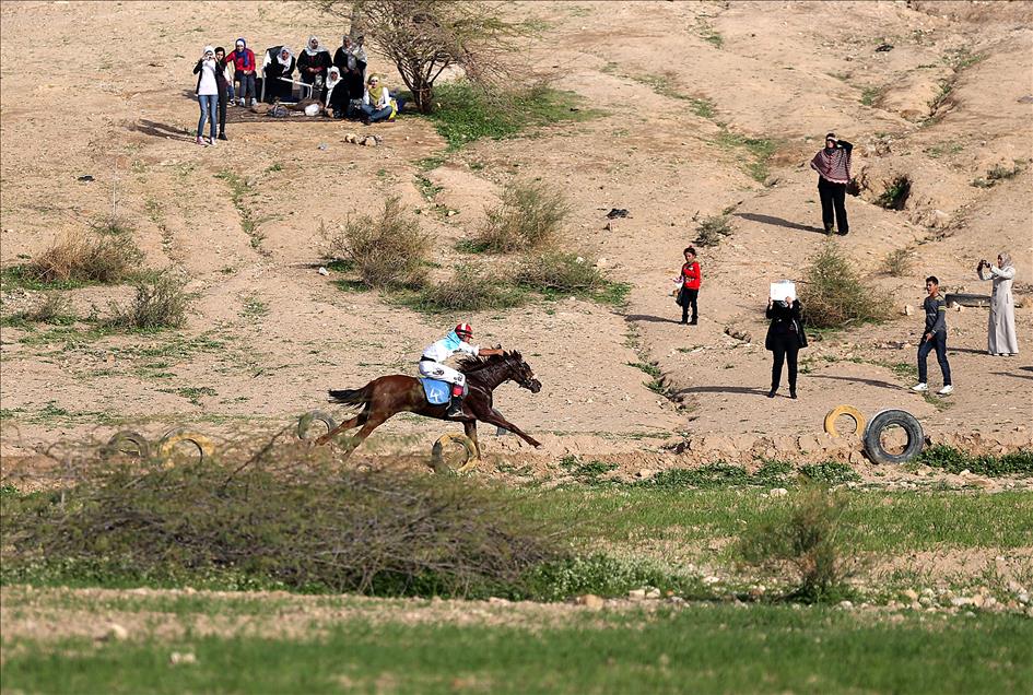 AMMAN' IN BATISINDAKI AL GHOR KOYUNDE, AT YARISLARI DUZENLENIYOR. GECIMLERINI ZOR SAGLAYAN URDUN' LU KOYLULER VE CIFTCILER ICIN BIR EGLENCE VE GECIM KAYNAGI HALINE GELEN AT YARISLARI HALKIN ILGISINI TOPLADI. (ANADOLU AJANSI - SALAH MALKAWI) (20130219)