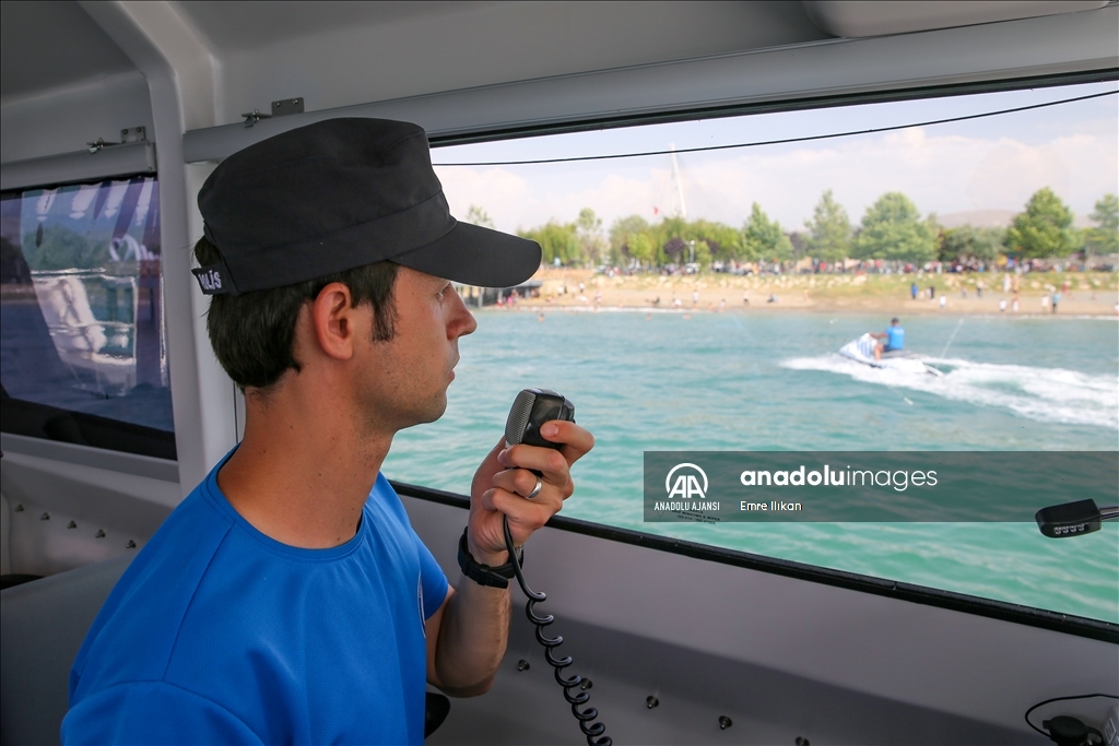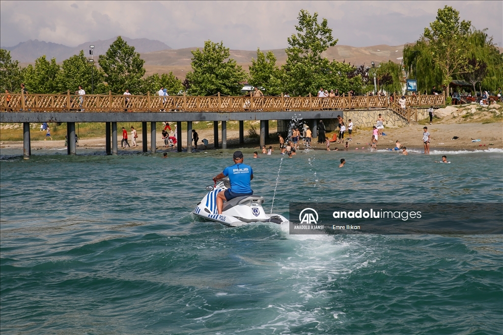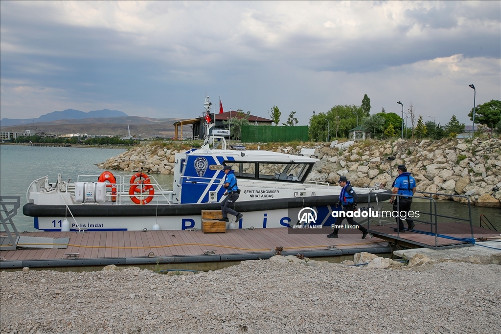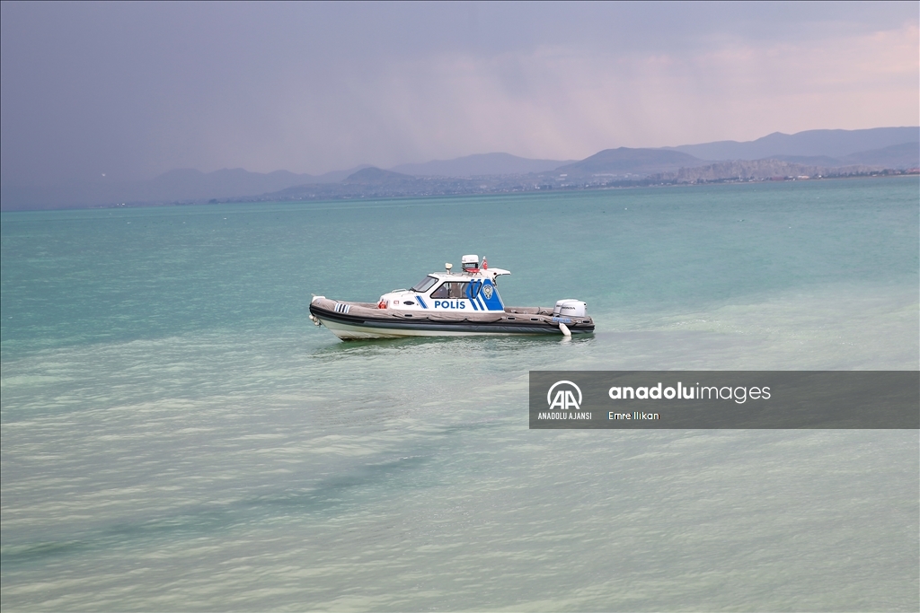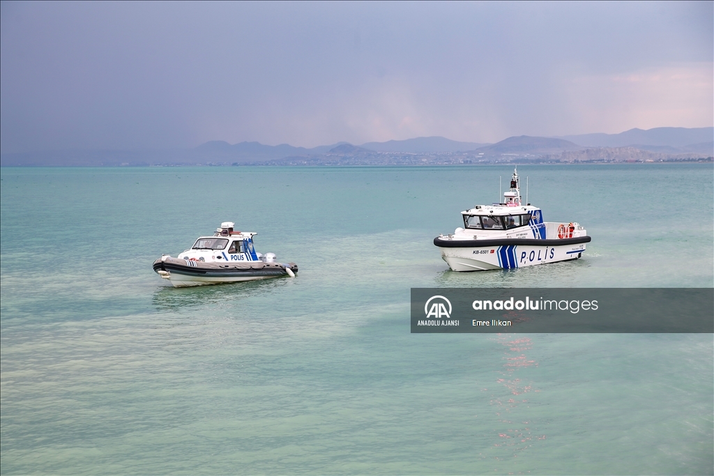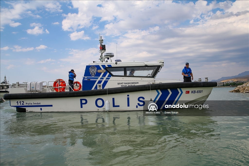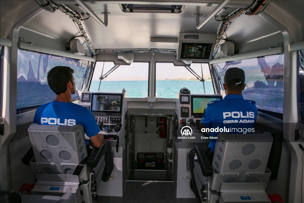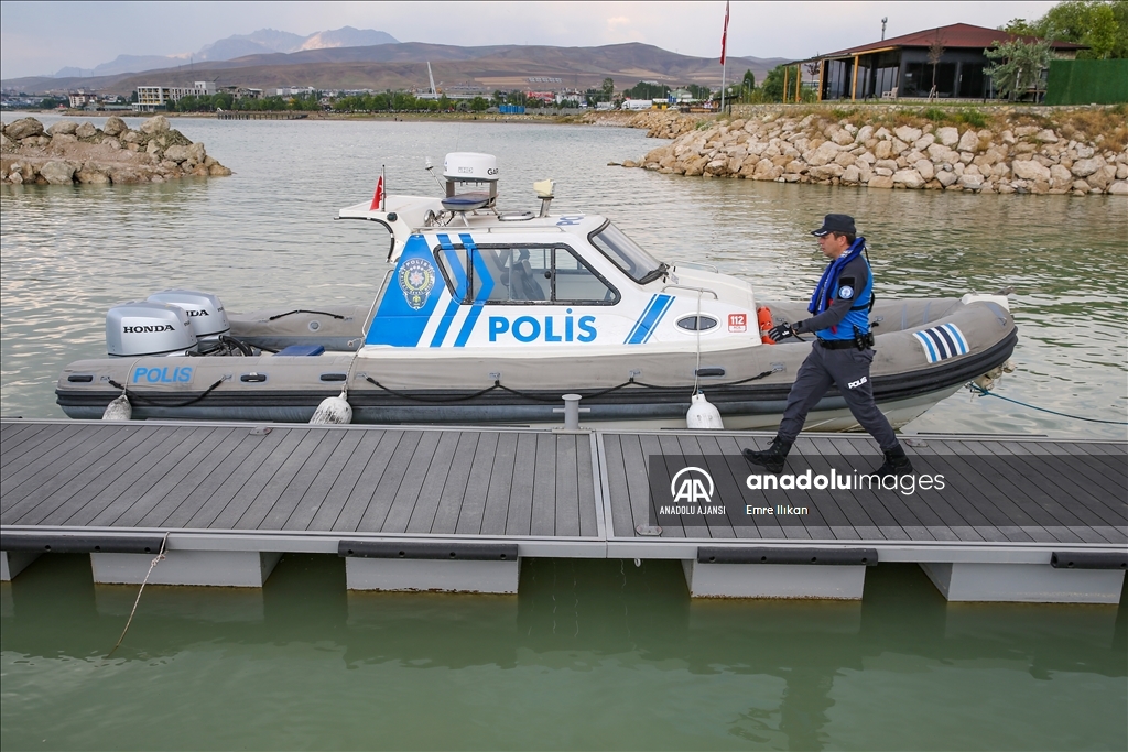 Van Emniyet Müdürlüğü bünyesinde faaliyet yürüten deniz polisleri, boğulma vakalarının önüne geçmek için Van Gölü'nde devriye atıyor, vatandaşları bilgilendiriyor.