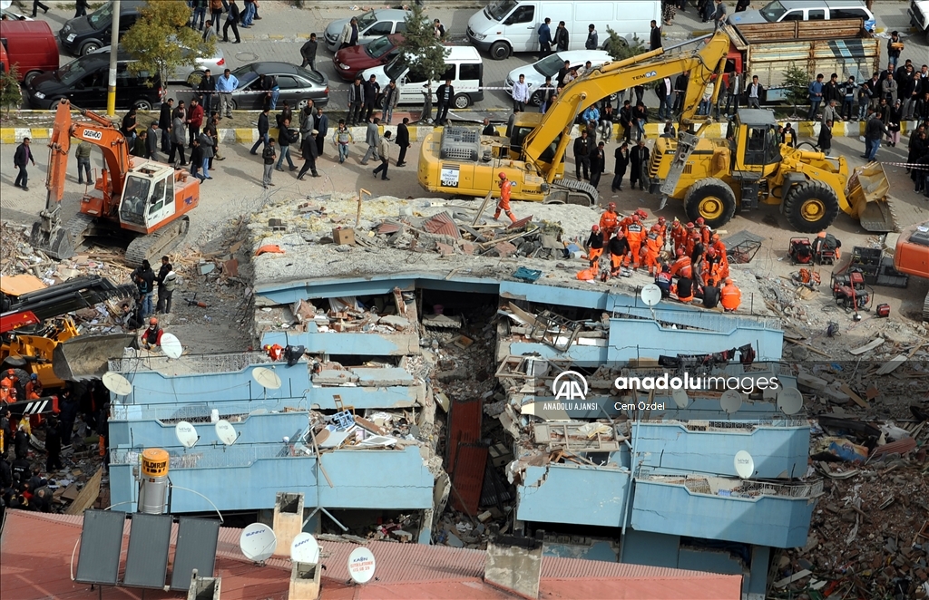 Van, 11 yıl önce meydana gelen 7,2 ve 5,6 büyüklüğündeki iki depremle ağır yara almasının ardından, kent için tek yürek olan vatandaşların yurdun dört bir yanından gönderdiği yardımlar ve devletin yatırımlarıyla yeniden ayağa kaldırıldı. Depremin ardından arama kurtarma ekipleri enkaz bölgelerinde çalışmalarını sürdürmüştü. (Arşiv) ( Ahmet İzgi - Anadolu Ajansı )Ahmet İzgi