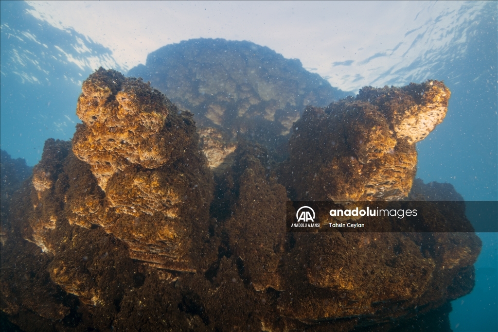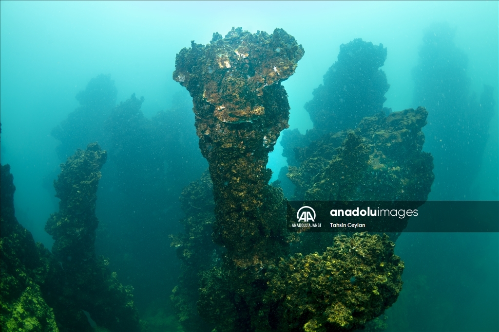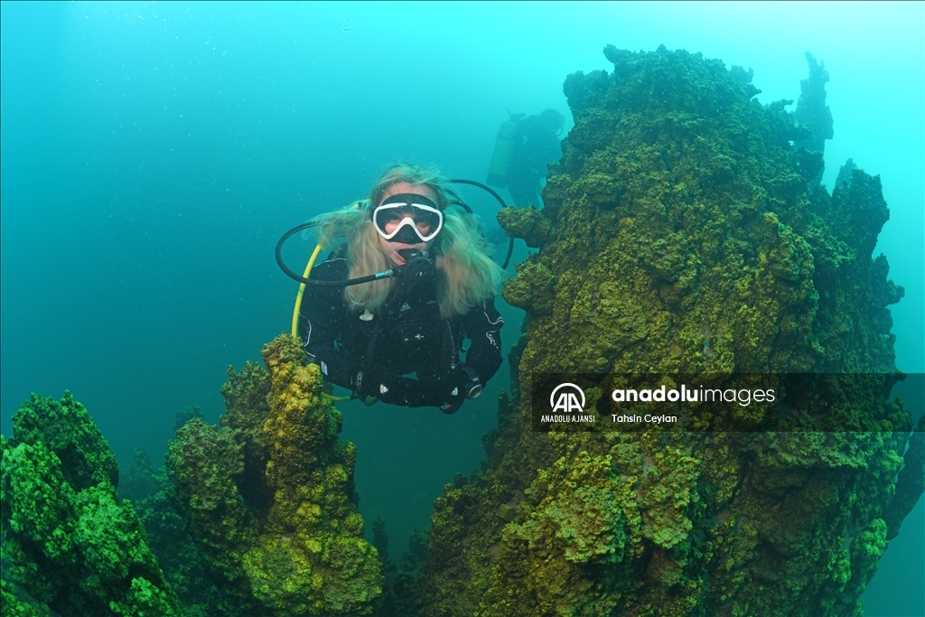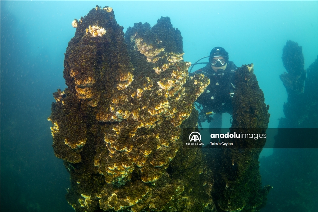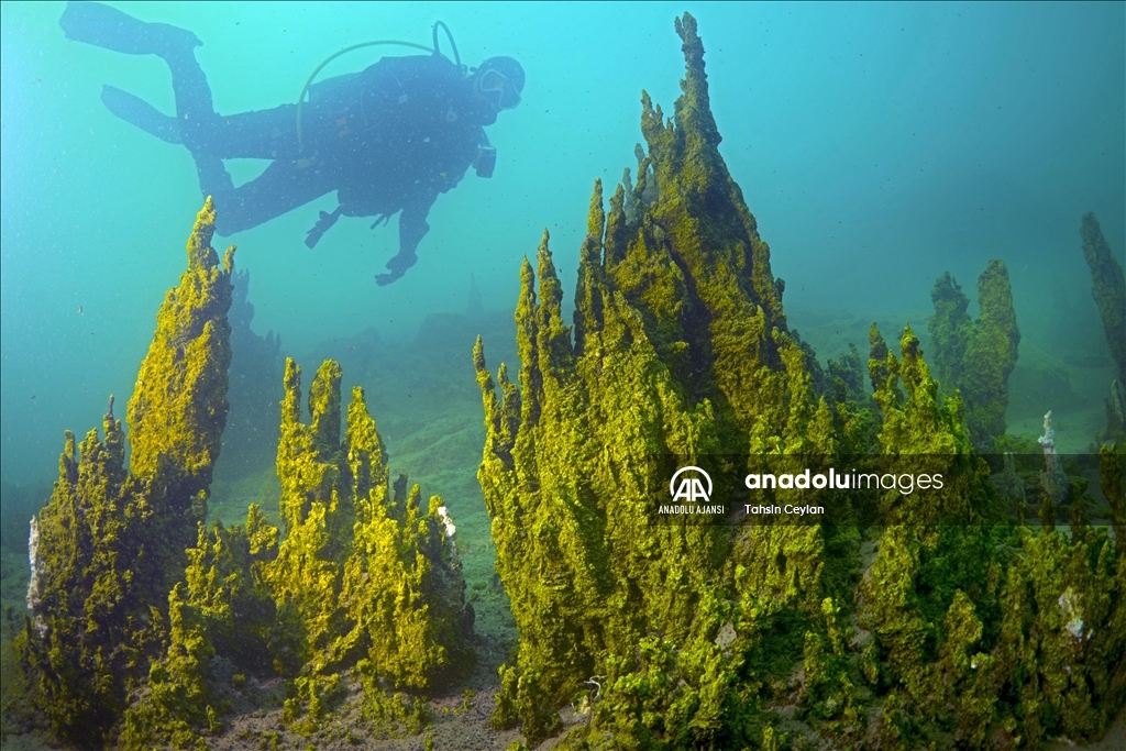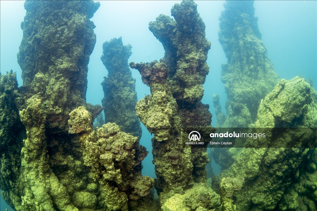 Van Gölü'nde "Su altı peri bacaları" olarak da nitelendirilen mikrobiyalitlerin (dikitler) tekne çapaları ve pervanelerden zarar görmesinin engellenmesi için 4 noktaya şamandıra yerleştirildi. Van Gölü'nde binlerce yılda oluşan mikrobiyalitler ve şamandıra bırakılan noktalar su altından görüntülendi. ( Tahsin Ceylan - Anadolu Ajansı )Tahsin Ceylan