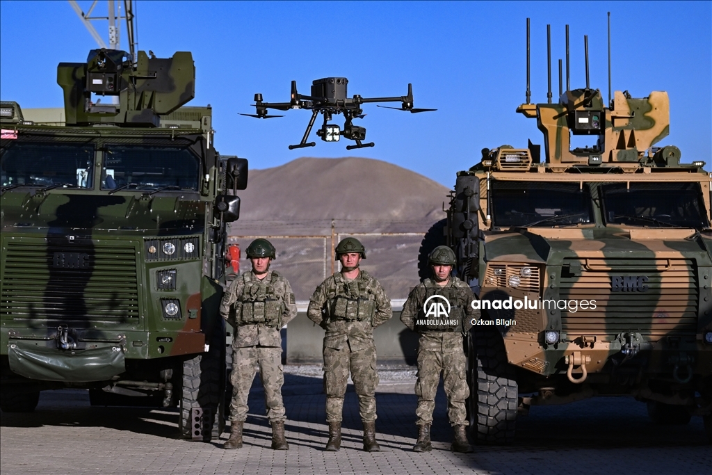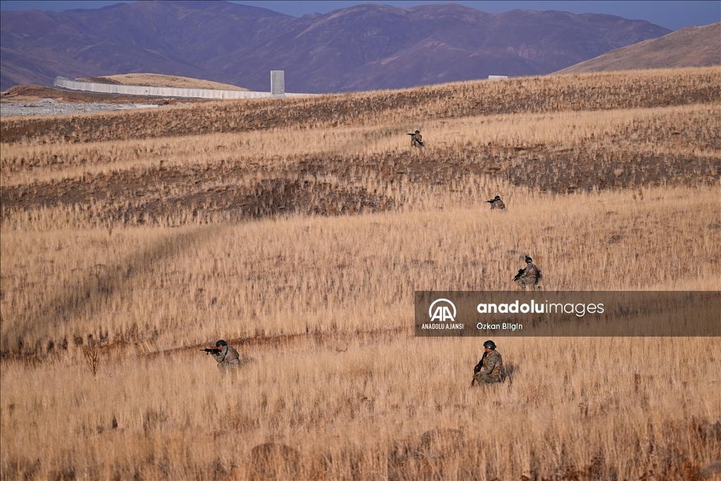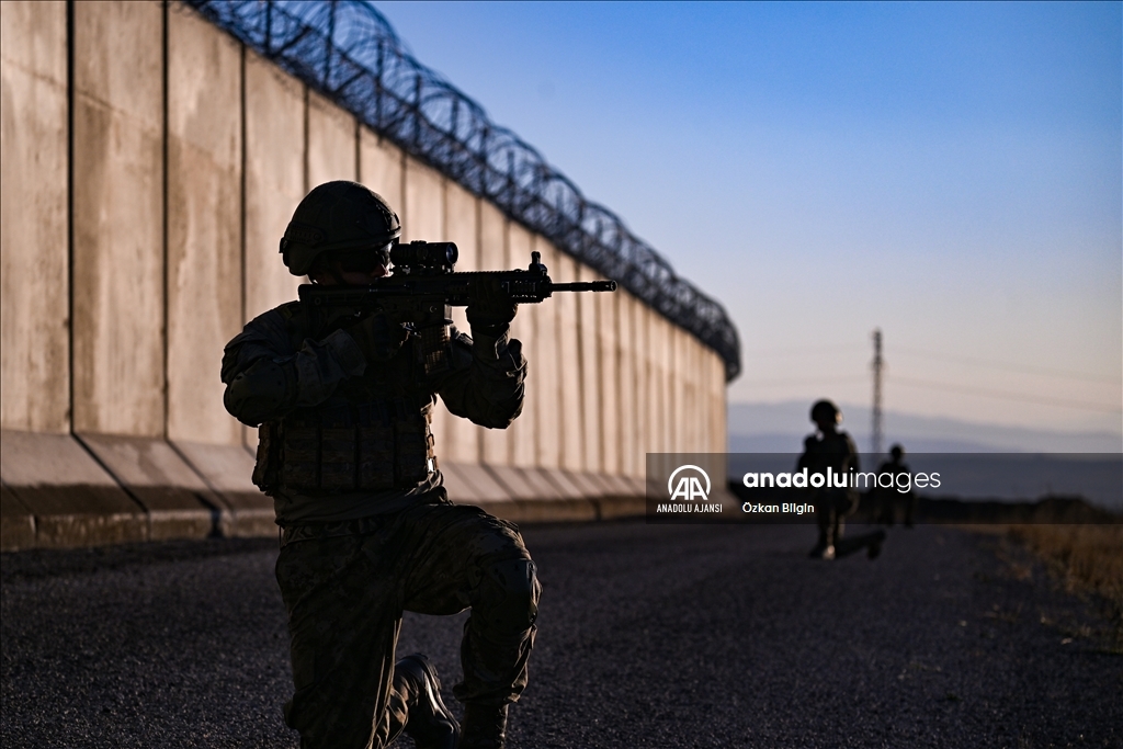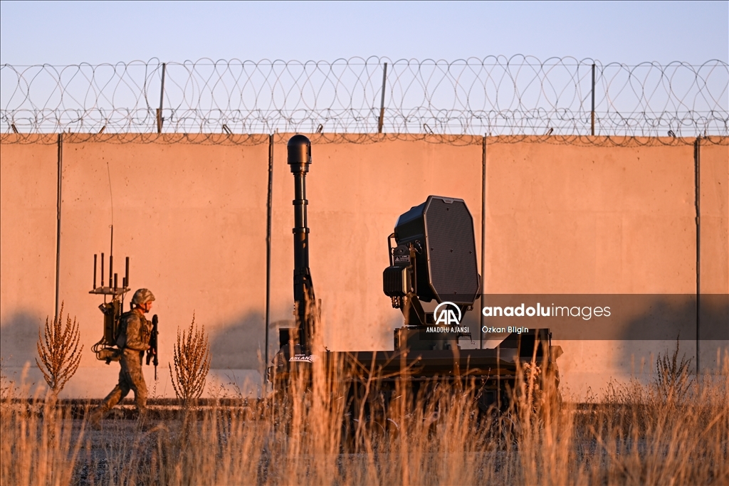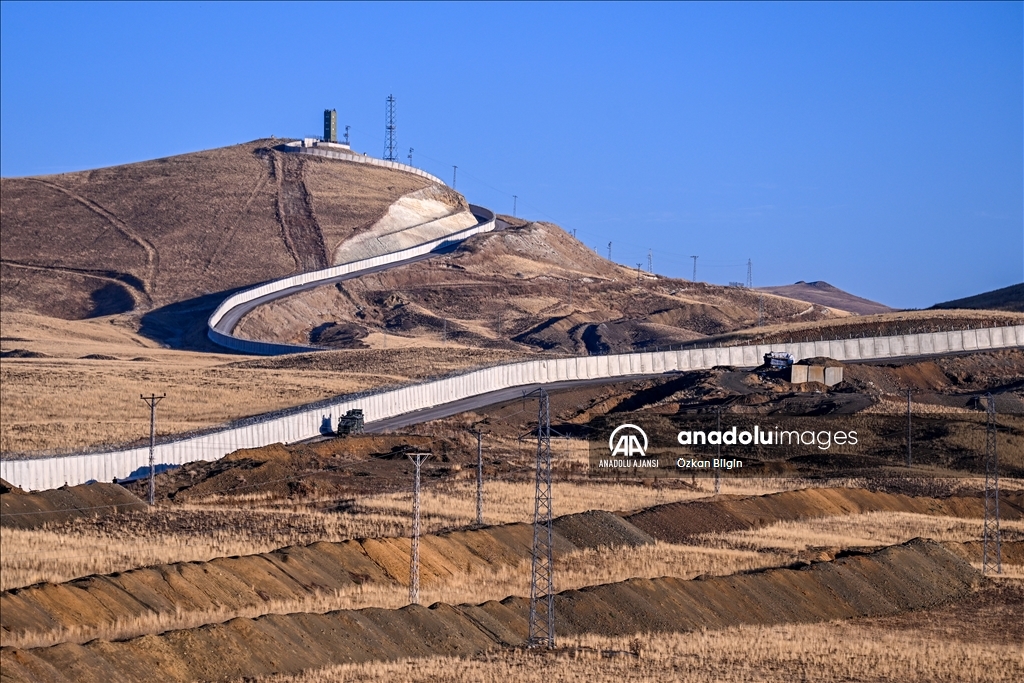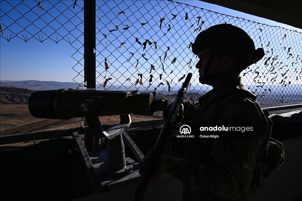 Güvenlik duvarı, hendek çalışmaları ve teknolojik yatırımlarla sınırın kontrol altında tutulduğu bölgede, hudut birlikleri 2 bin 500 rakımlı sarp ve engebeli coğrafyada 7 gün 24 saat görev yapıyor. (Özkan Bilgin - Anadolu Ajansı)Özkan Bilgin