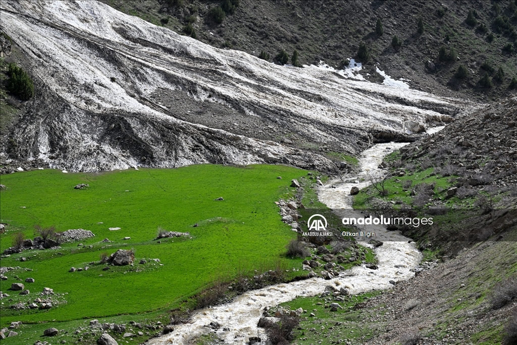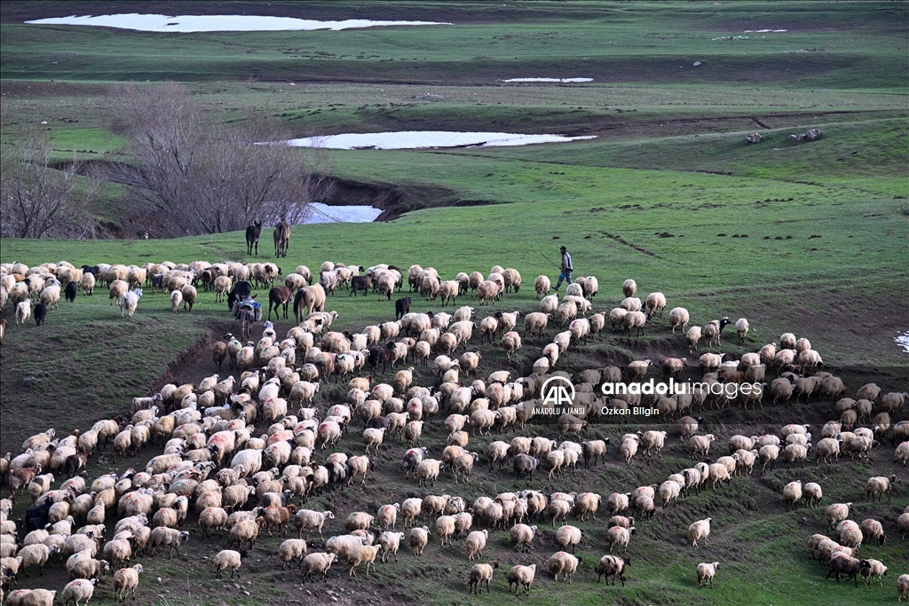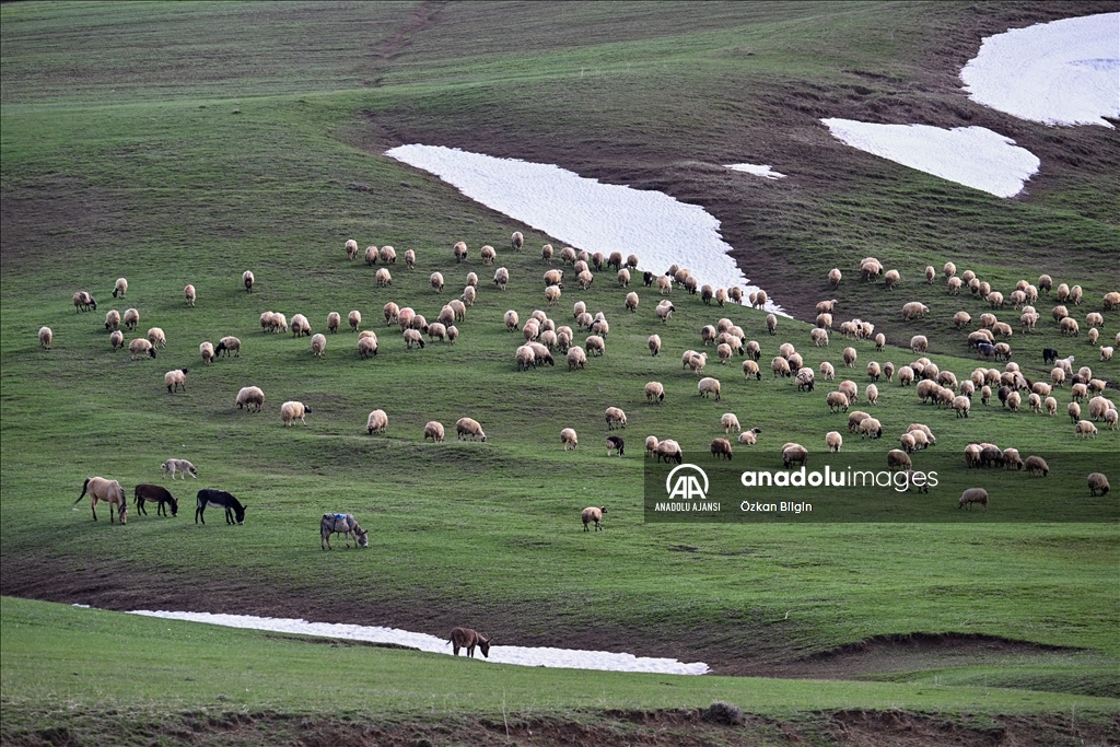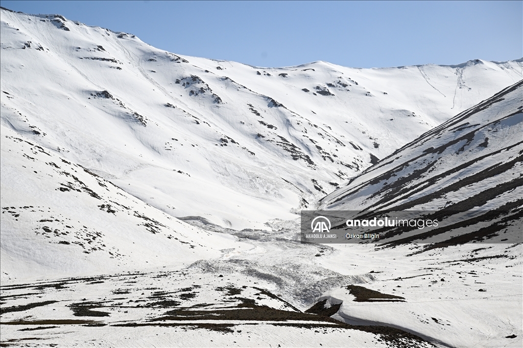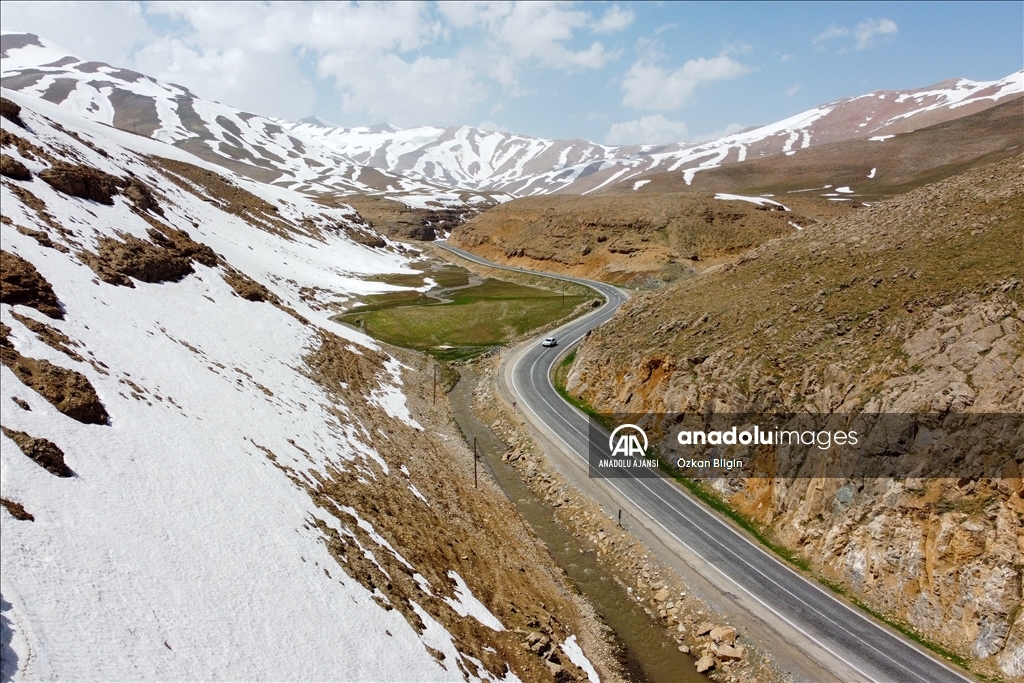 Yükselti ve coğrafi yapının etkisiyle bazı bölgelerde hava sıcaklığında farklılıkların yaşandığı Van'da, Çatak ilçesine bağlı kırsal mahallede hayvanlar merada otlatılırken, 16 kilometre ilerisindeki Bahçesaray kara yolunda metrelerce kar var.