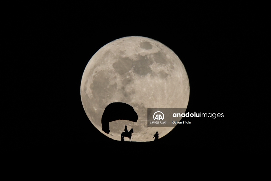 Ay'ın Dünya'ya en yakın konumda olduğu, normalden daha parlak ve büyük gözlemlendiği "Süper Ay" Van'da paraşütçüler ve çobanlarla güzel görüntü oluşturdu. ( Özkan Bilgin - Anadolu Ajansı )Özkan Bilgin