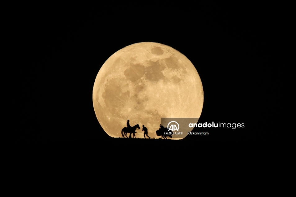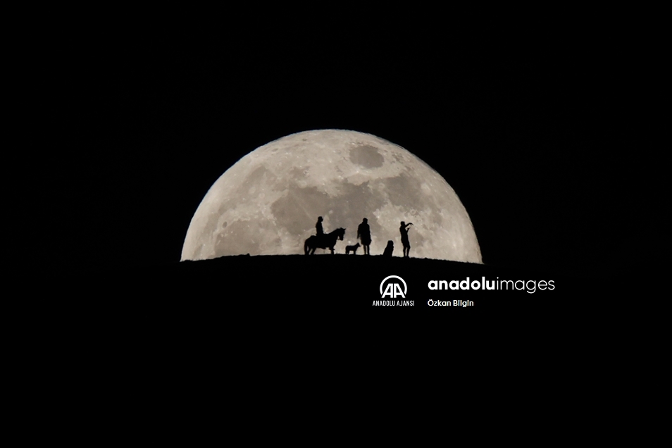 Ay'ın Dünya'ya en yakın konumda olduğu, normalden daha parlak ve büyük gözlemlendiği "Süper Ay" Van'da çobanlarla güzel görüntü oluşturdu.