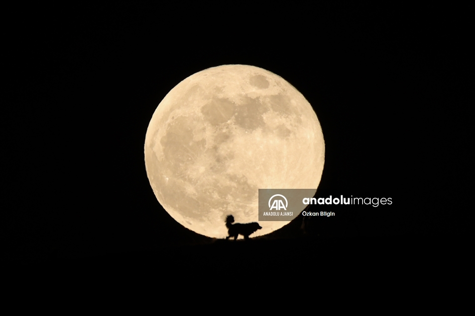 Ay'ın Dünya'ya en yakın konumda olduğu, normalden daha parlak ve büyük gözlemlendiği "Süper Ay" Van'da çoban köpeği ile güzel görüntü oluşturdu. ( Özkan Bilgin - Anadolu Ajansı )Özkan Bilgin