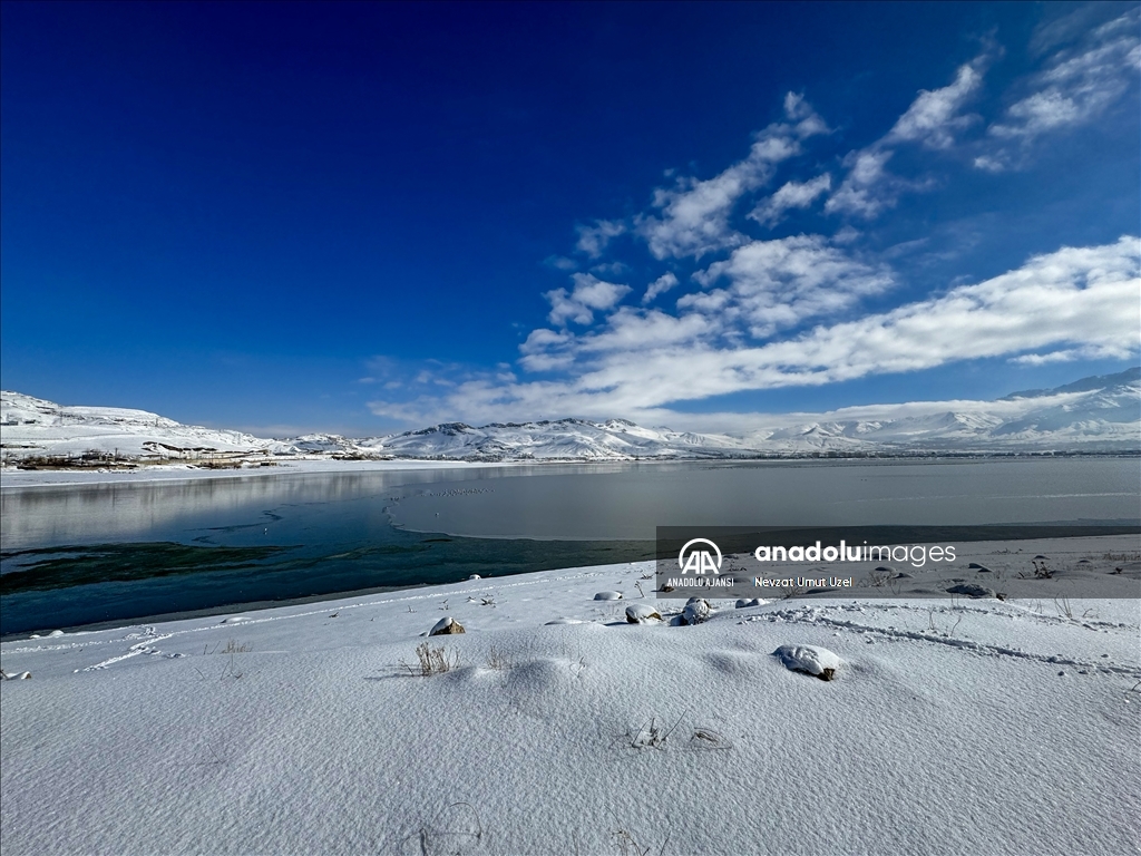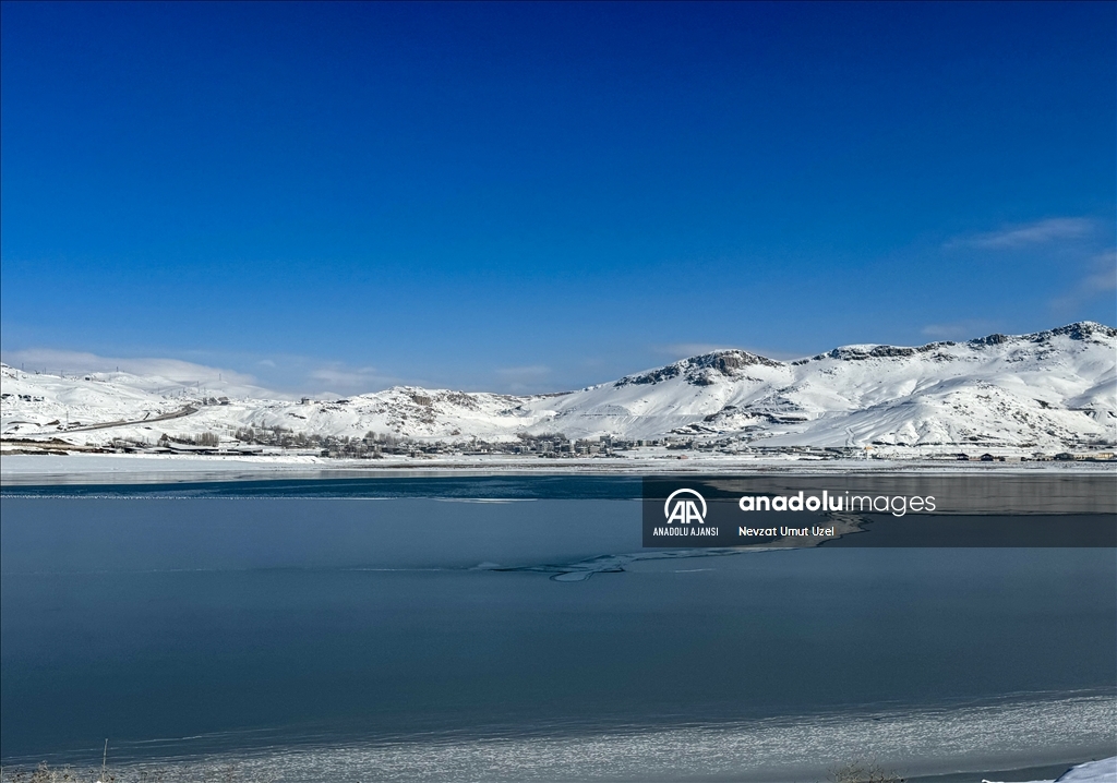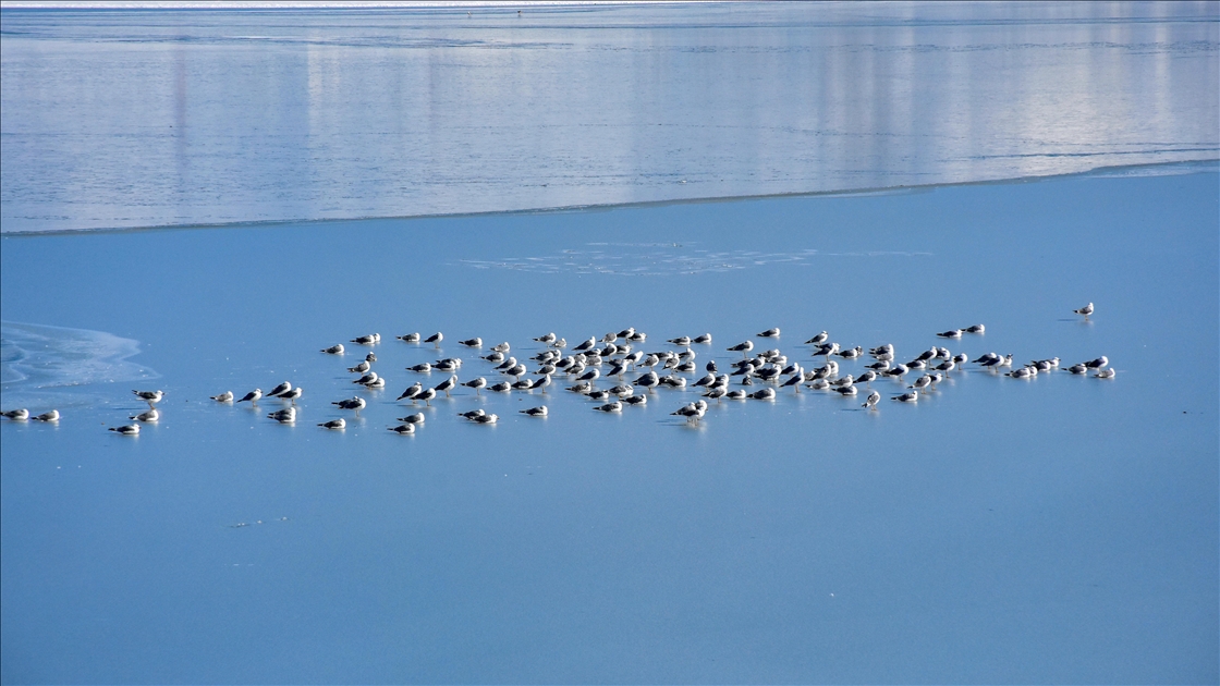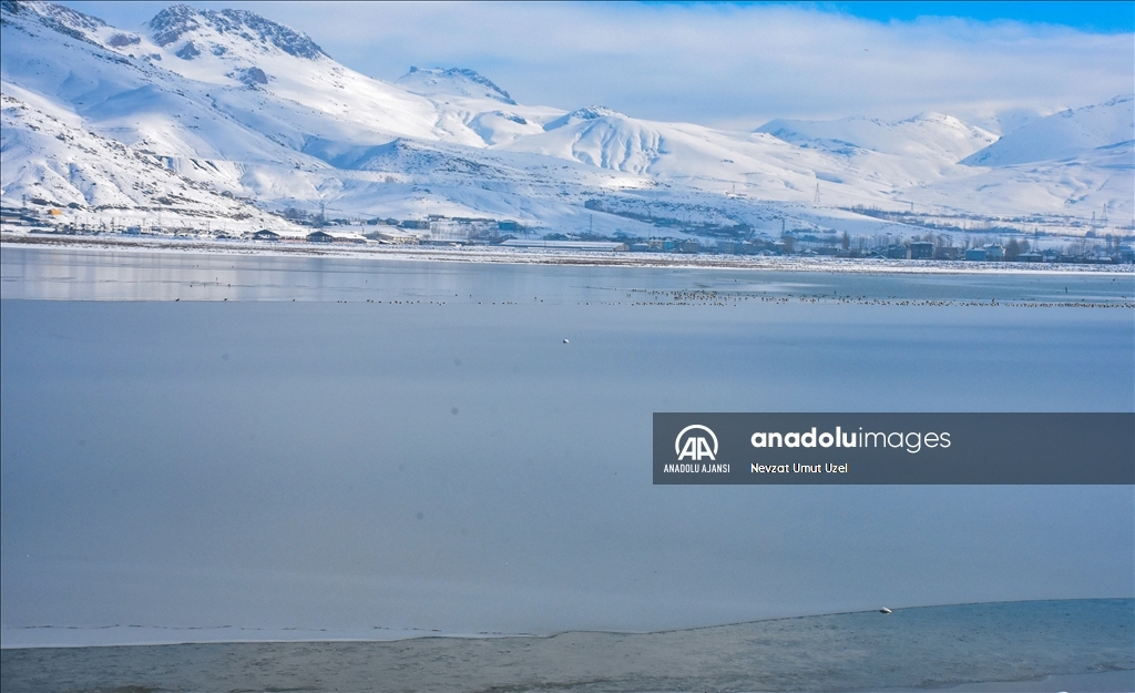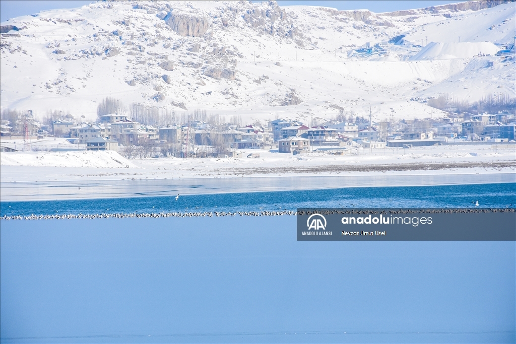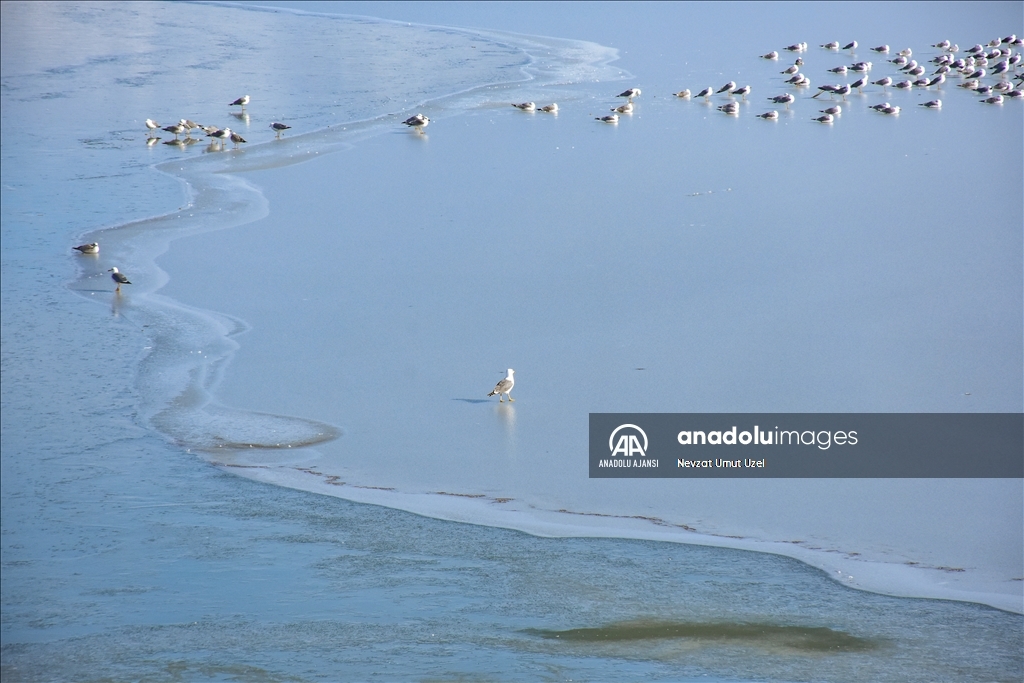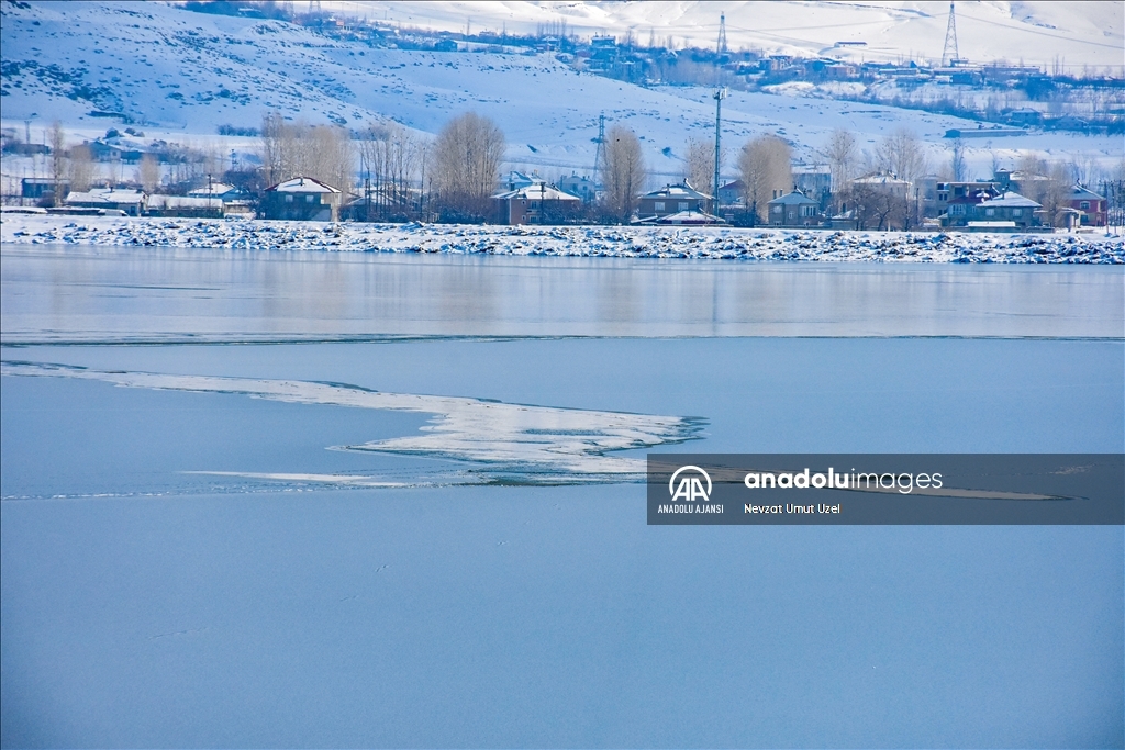 Van'da etkili soğuk hava nedeniyle Sıhke Gölü'nün yüzeyi buz tuttu. ( Nevzat Umut Uzel - Anadolu Ajansı )