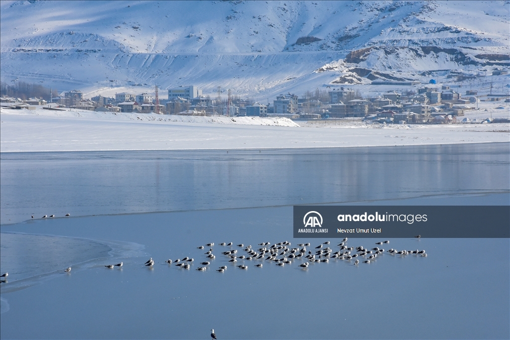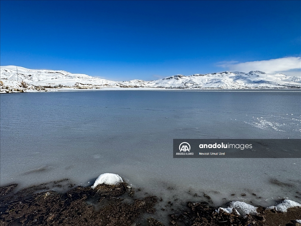 Van'daki Sıhke Gölü'nün yüzeyi buz tuttu