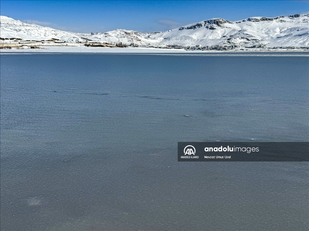 Van'da etkili soğuk hava nedeniyle Sıhke Gölü'nün yüzeyi buz tuttu.