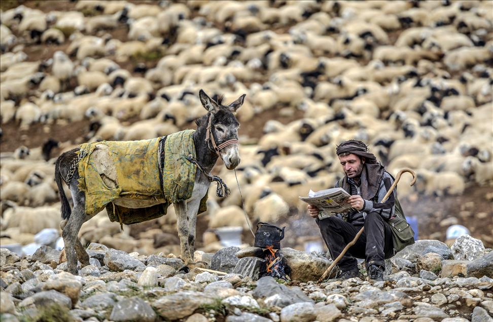 Van'da yüksek kesimlere kar yağması ve havaların soğumaya başlamasıyla çobanların da çalışma sezonu sona erdi. Mevsim şartlarının çetin geçmeye başladığı kırsal kesimlerde sürüleri yaylalardan indiren çobanlar, yerleşim yerlerine yakın noktalardaki belirli bölgelerde hayvanları sahiplerine teslim etmeye başladı. (Ali İhsan Öztürk - Anadolu Ajansı)Ali İhsan Öztürk