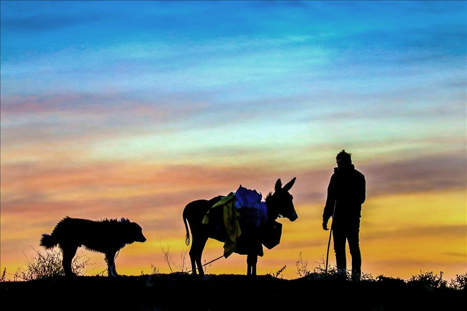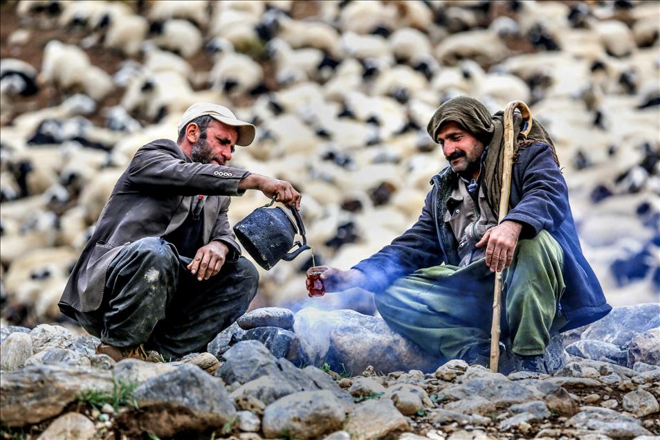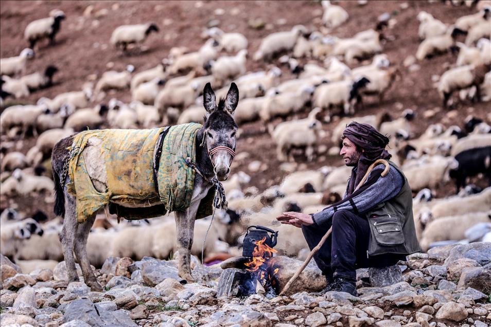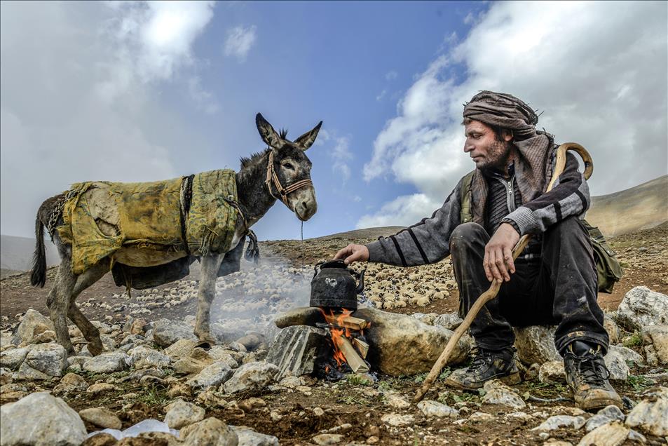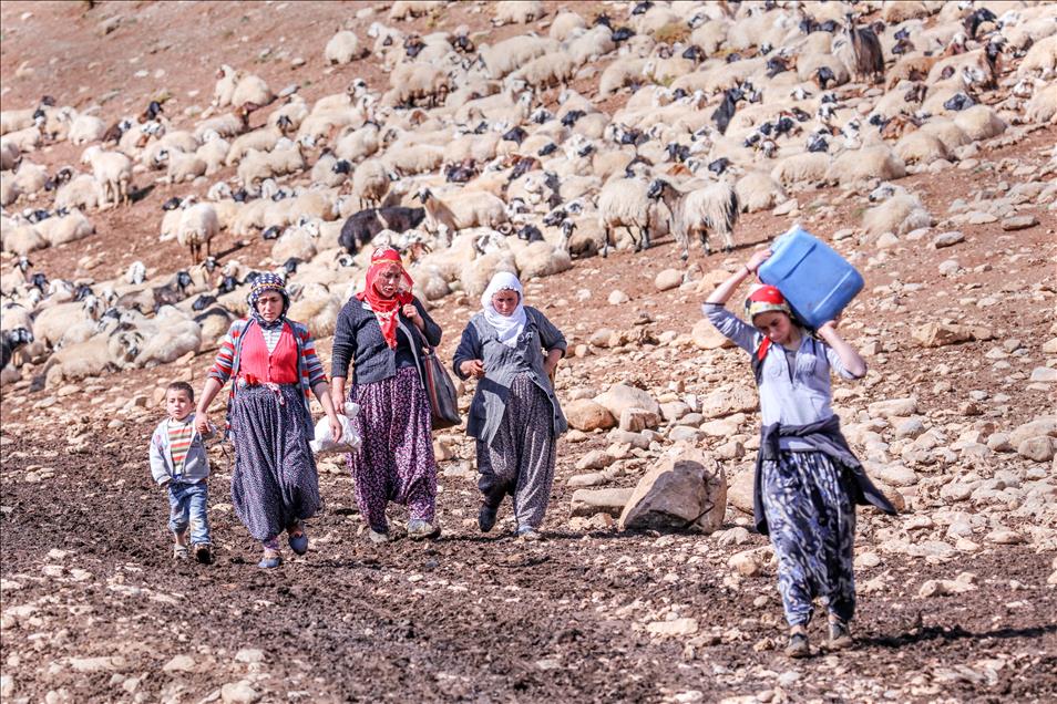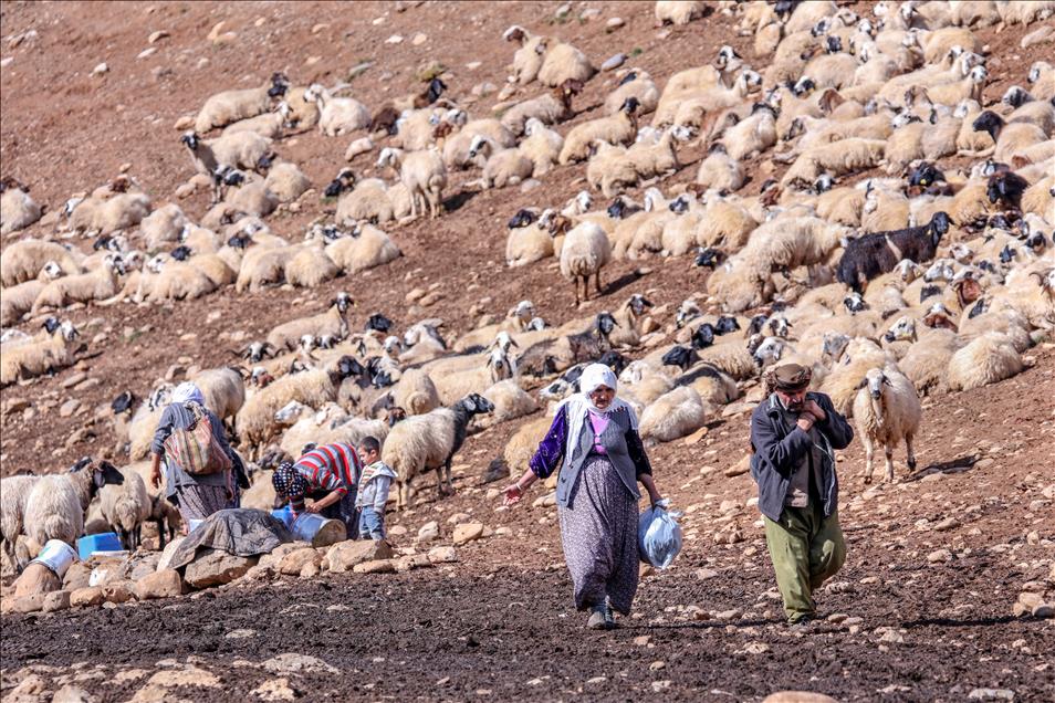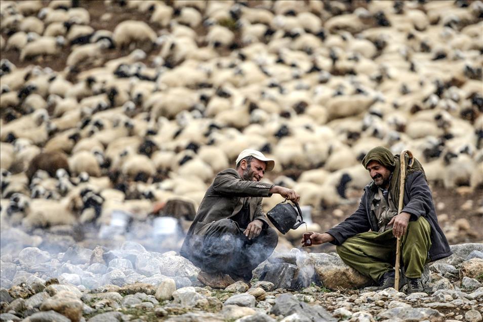 Van'da yüksek kesimlere kar yağması ve havaların soğumaya başlamasıyla çobanların da çalışma sezonu sona erdi. Mevsim şartlarının çetin geçmeye başladığı kırsal kesimlerde sürüleri yaylalardan indiren çobanlar, yerleşim yerlerine yakın noktalardaki belirli bölgelerde hayvanları sahiplerine teslim etmeye başladı. (Ali İhsan Öztürk-Anadolu Ajansı)