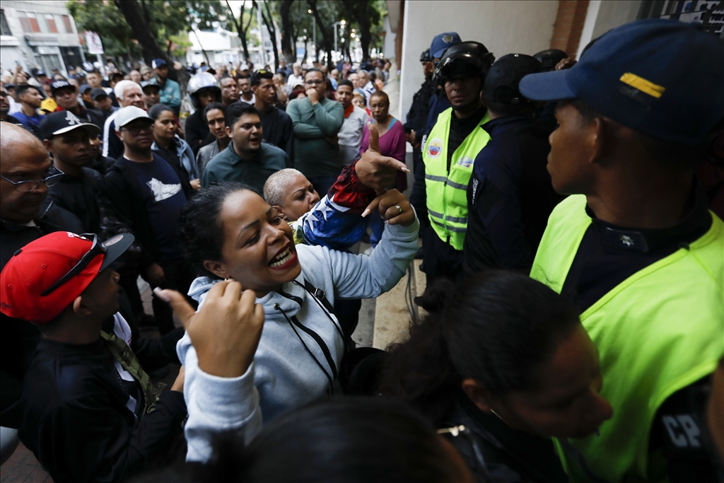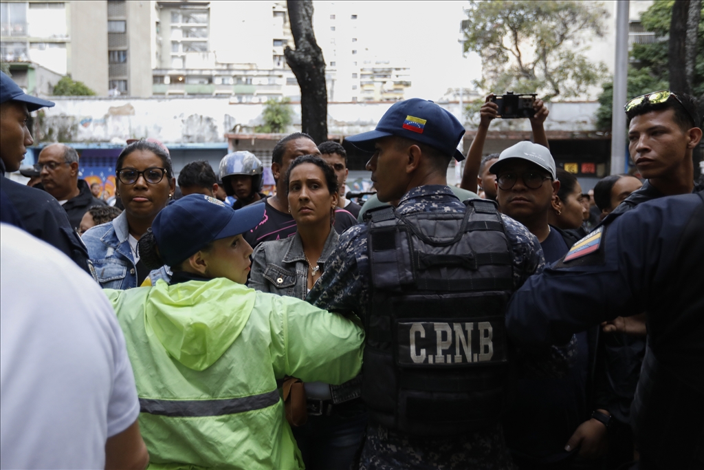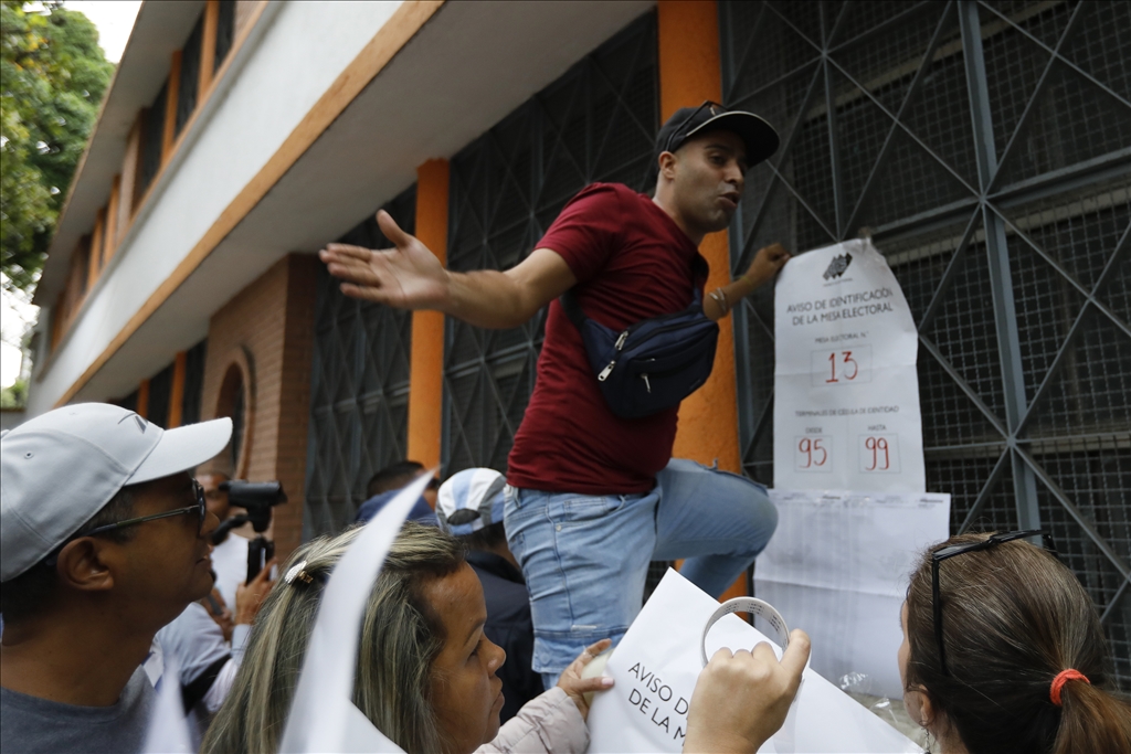 Caracas'ta bir seçim merkezi olan Andres Bello Okulu'nda seçim gözlemcilerinden kaynaklı bir gecikmeden dolayı uzun sıra beklemek zorunda kalan vatandaşlar, itirazda bulundu.Pedro Rances Mattey