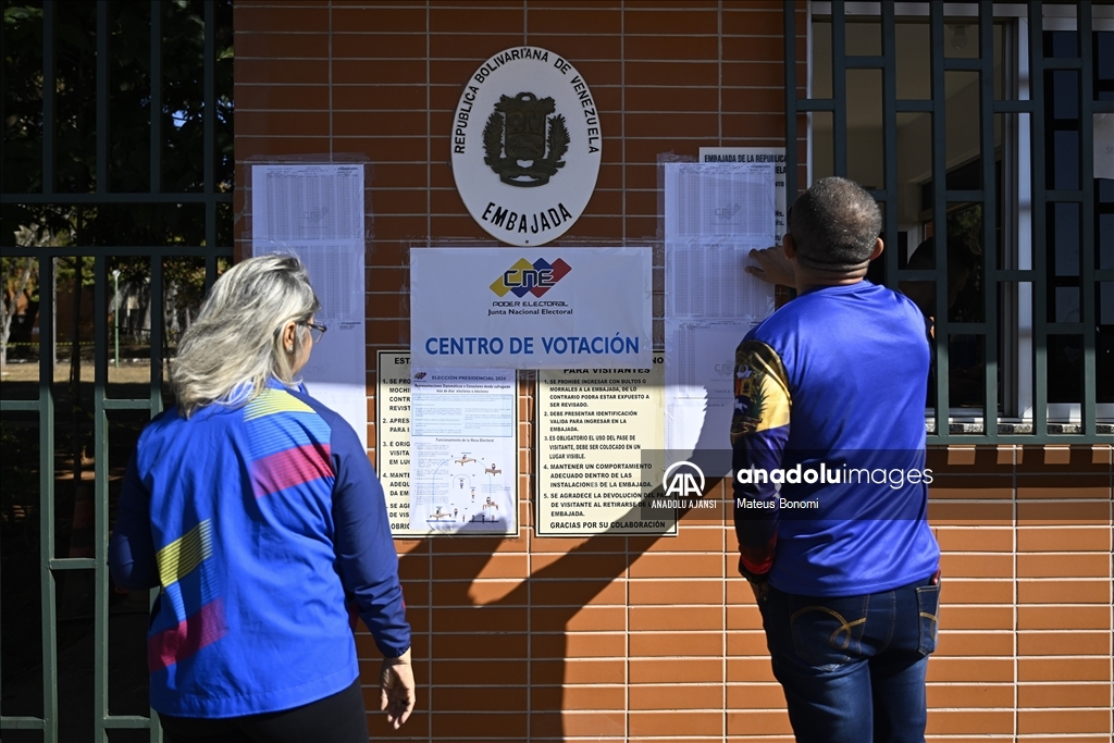 Brezilya'da yaşayan Venezuelalılar, başkent Brasilia'daki büyükelçilik binasına gelerek oy kullandı. (Mateus Bonomi - Anadolu Ajansı)Mateus Bonomi