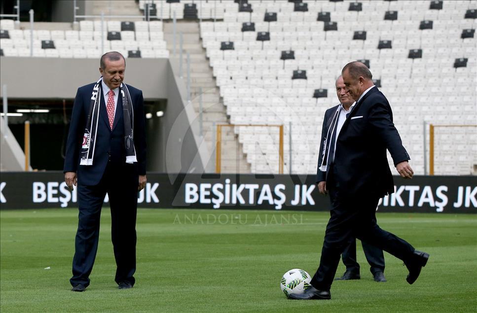 İstanbul'da yapımı tamamlanan Vodafone Arena Stadyumu Cumhurbaşkanı Recep Tayyip Erdoğan, Başbakan Ahmet Davutoğlu ve 11. Cumhurbaşkanı Abdullah Gül'ün katılımıyla açıldı. Açılışın ardından Cumhurbaşkanı Erdoğan ile Türkiye Futbol Direktörü Fatih Terim (sağda) top oynadı. ( Berk Özkan - Anadolu Ajansı )Berk Özkan