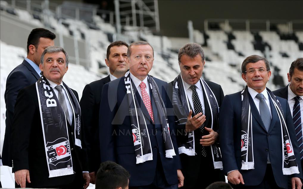 İstanbul'da yapımı tamamlanan Vodafone Arena Stadyumu Cumhurbaşkanı Recep Tayyip Erdoğan, Başbakan Ahmet Davutoğlu ve 11. Cumhurbaşkanı Abdullah Gül'ün katılımıyla açıldı. Açılışın ardından Cumhurbaşkanı Erdoğan, Başbakan Davutoğlu ve 11. Cumhurbaşkanı Gül ile top oynadı. ( Berk Özkan - Anadolu Ajansı )Berk Özkan