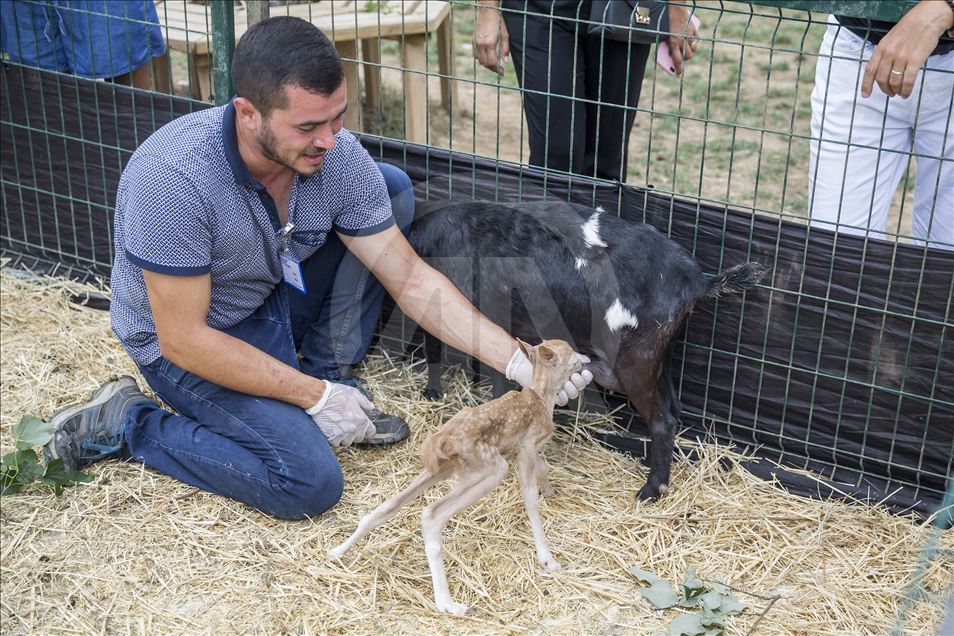 Çekmeköy Park Of İstanbul'daki hayvanat bahçesinde 12 Ağustos'ta dünyaya gelen ve annesi tarafından reddedilen yavru alageyiğe, aynı gün yavrulayan keçi, "süt anne" oldu. Bu sayede keçinin yavrularıyla aynı sütü paylaşan yavru alageyik, 2 oğlakla da süt kardeş oldu. ( Orhan Akkanat - Anadolu Ajansı )Orhan Akkanat