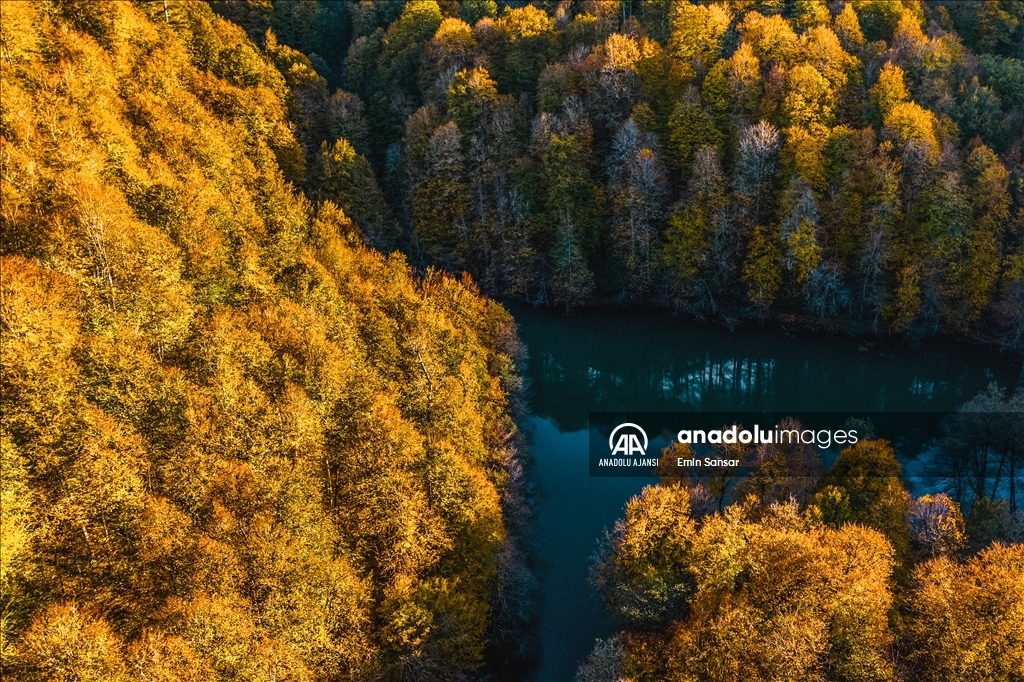 Doğa harikası göllerin yanı sıra zengin bitki örtüsüne de sahip olan Yedigöller Milli Parkı ve çevresindeki dağlar, sonbaharın gelmesiyle farklı güzelliğe büründü. Bolu kent merkezine 45 kilometre uzaklıkta bulunan ve orman denizi olarak adlandırılan bölge, ziyaretçilerini sarı ve yeşilin farklı tonlarıyla ağırlıyor. Türkiye'nin en güzel sonbahar rotalarından biri olan Yedigöller her yıl çok sayıda turisti ağırlıyor. ( Emin Sansar - Anadolu Ajansı )Emin Sansar