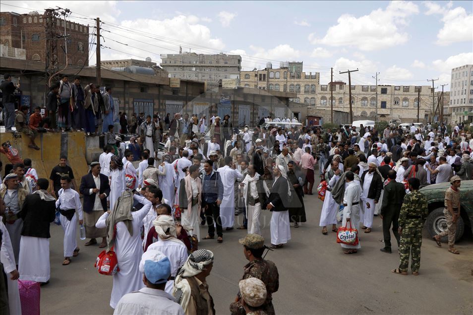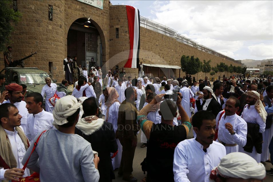 Yemen'in başkenti Sana'daki Merkez Hapishanesi'nde Husiler tarafından alıkonulan çok sayıda tutuklu, tek taraflı olarak serbest bırakıldı. Hapishane önünde toplanan Yemenliler, serbest bırakılan yakınlarını karşılamak için bekledi. ( Mohammed Hamoud - Anadolu Ajansı )Mohammed Hamoud