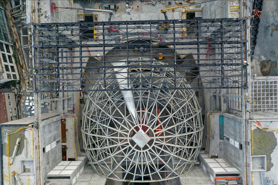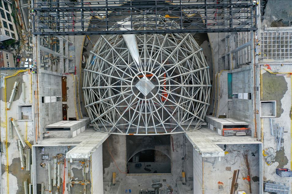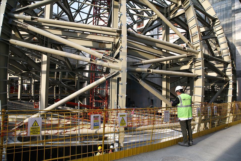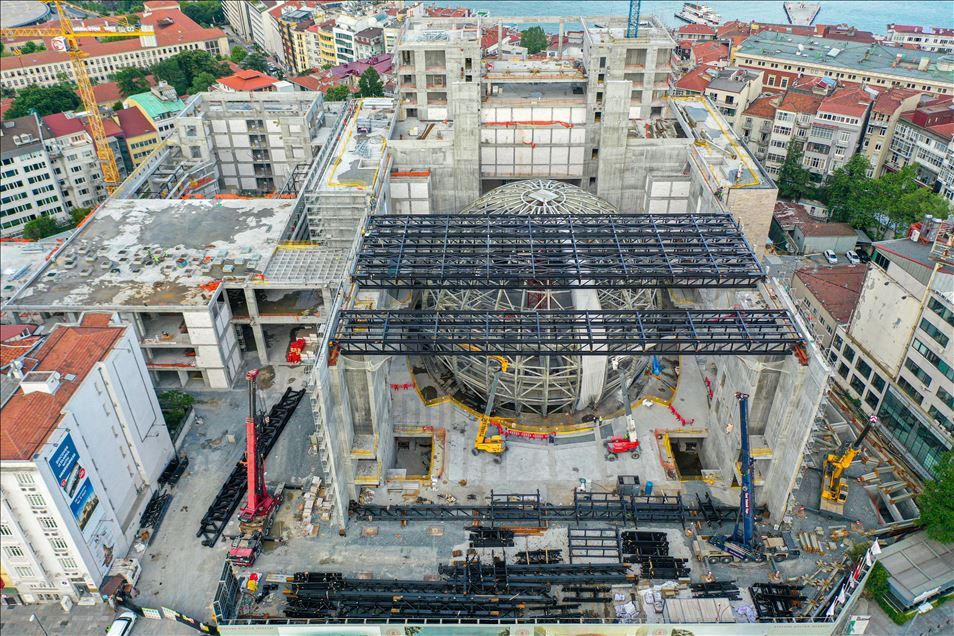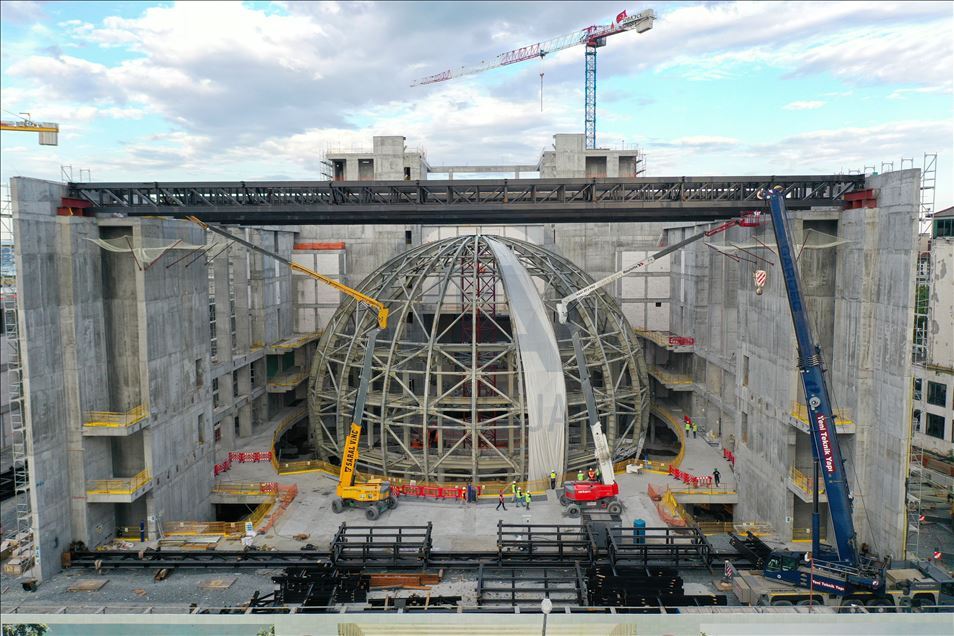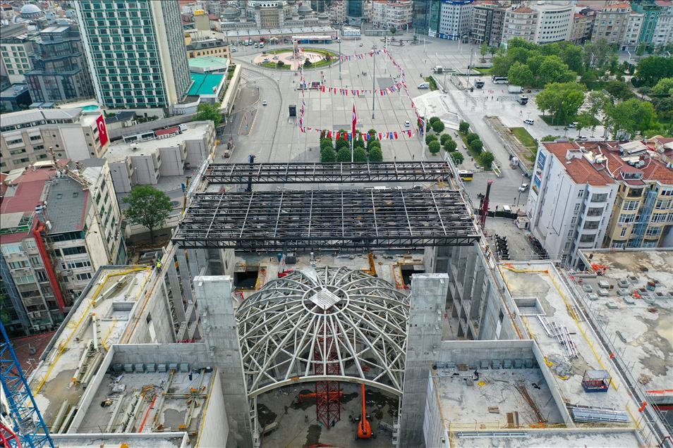 Temeli Türkiye Cumhurbaşkanı Recep Tayyip Erdoğan'ın katılımıyla geçen yıl 10 Şubat'ta atılan yeni Atatürk Kültür Merkezinin (AKM) kaba inşaatı tamamlanırken dış kaplama işçiliği sürüyor. ( Muhammed Enes Yıldırım - Anadolu Ajansı )Muhammed Enes Yıldırım