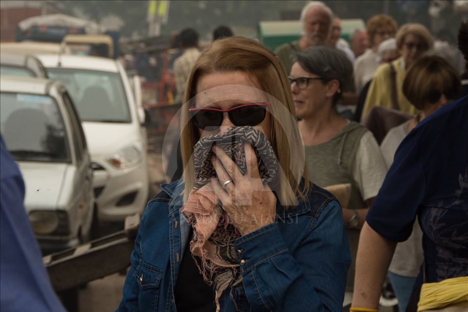 Hindistan'ın başkenti Yeni Delhi'de hava kalitesinin acil durum seviyesine düştüğü bildirildi. Başkentteki 37 hava kalitesi izleme istasyonunun tamamı hava kalitesi indeksini 400'ün üzerinde gösterirken, bazı bölgelerde bu seviyenin 700'ün üzerine çıkarak tehlikeli seviyeye geldiği iletildi. Vatandaşlar ve turistler hava kirliliğinden etkilenmemek için maske taktı.