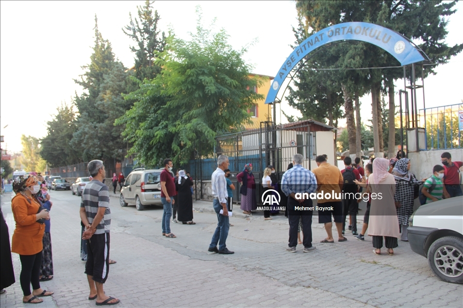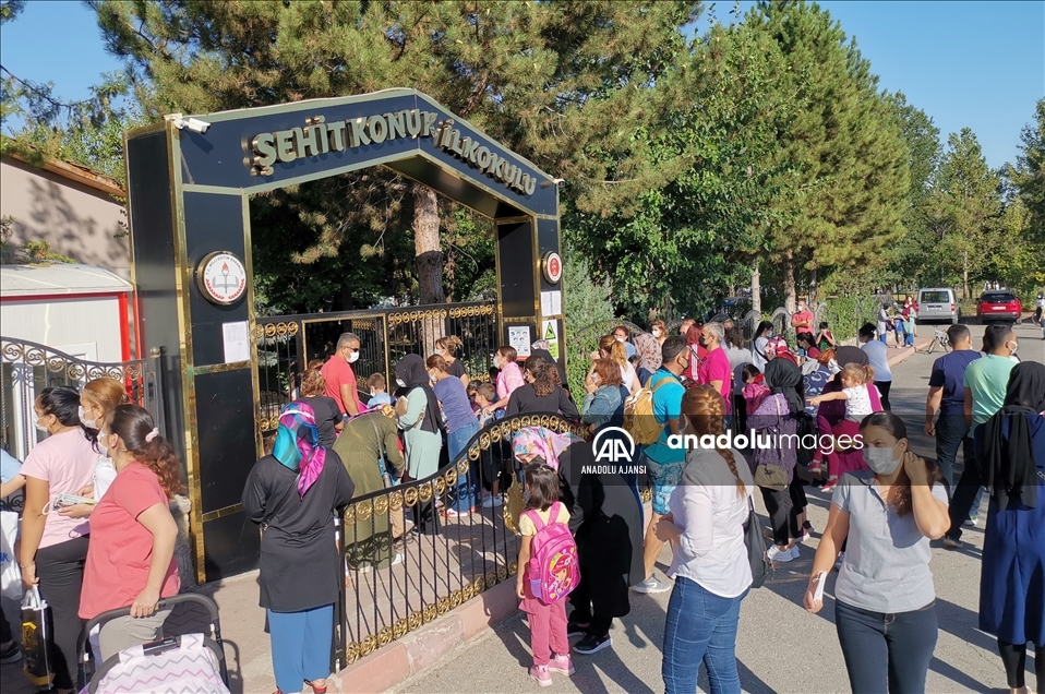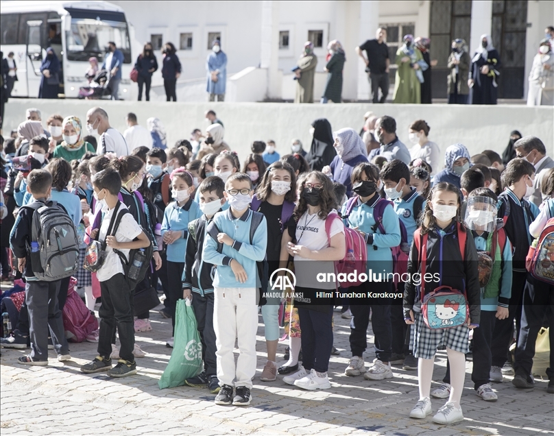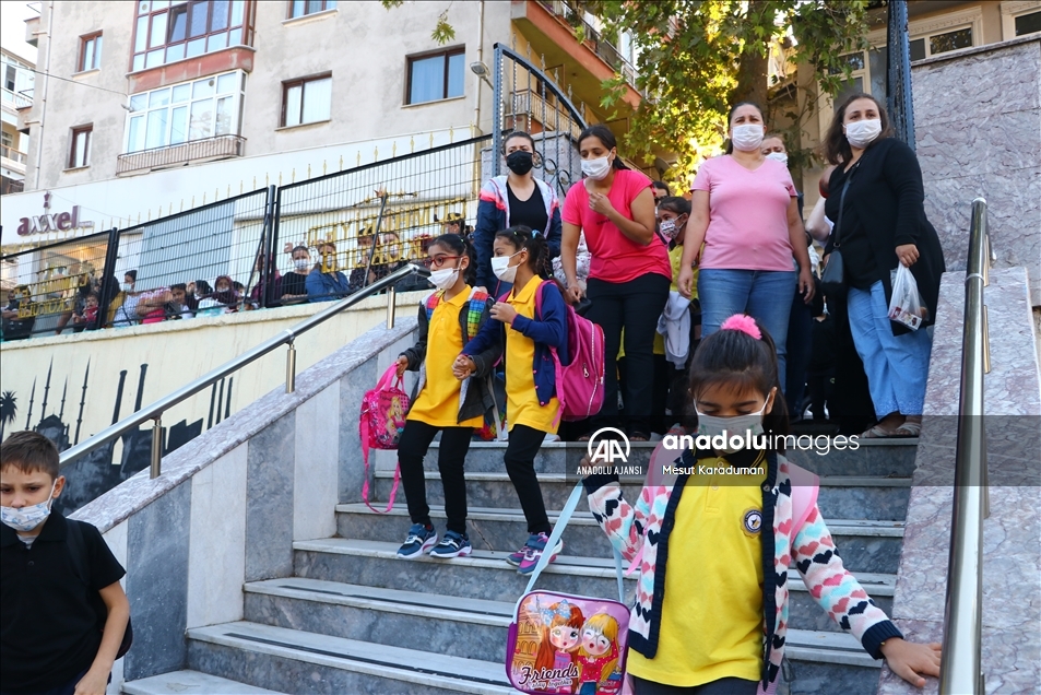 Hatay'da, yeni tip koronavirüse (Kovid-19) karşı alınan tedbirlerle, 2021-2022 eğitim öğretim yılında haftada 5 gün uygulanacak yüz yüze eğitime başlandı. Veliler çocuklarını okul önlerinde bekledi. ( Mehmet Bayrak - Anadolu Ajansı )Mehmet Bayrak