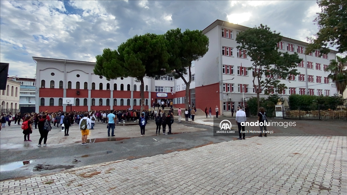 İzmir'de, yeni eğitim öğretim yılının başlamasıyla öğrenciler okullarına gelerek ders başı yaptı. ( Ömer Evren Atalay - Anadolu Ajansı )Ömer Evren Atalay