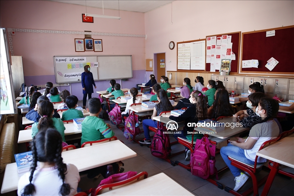 Adana'da, yeni tip koronavirüse (Kovid-19) karşı alınan tedbirlerle, 2021-2022 eğitim öğretim yılında haftada 5 gün uygulanacak yüz yüze eğitime başlandı. ( Ozan Efeoğlu - Anadolu Ajansı )Ozan Efeoğlu