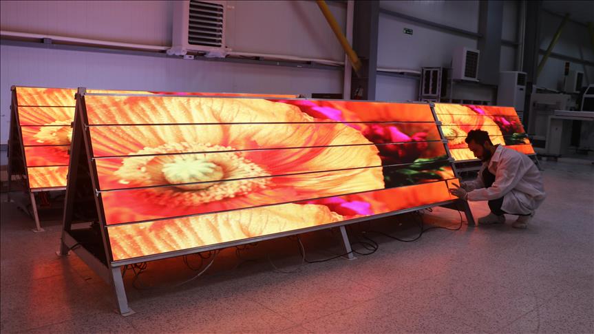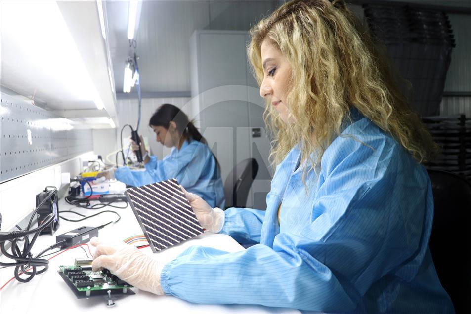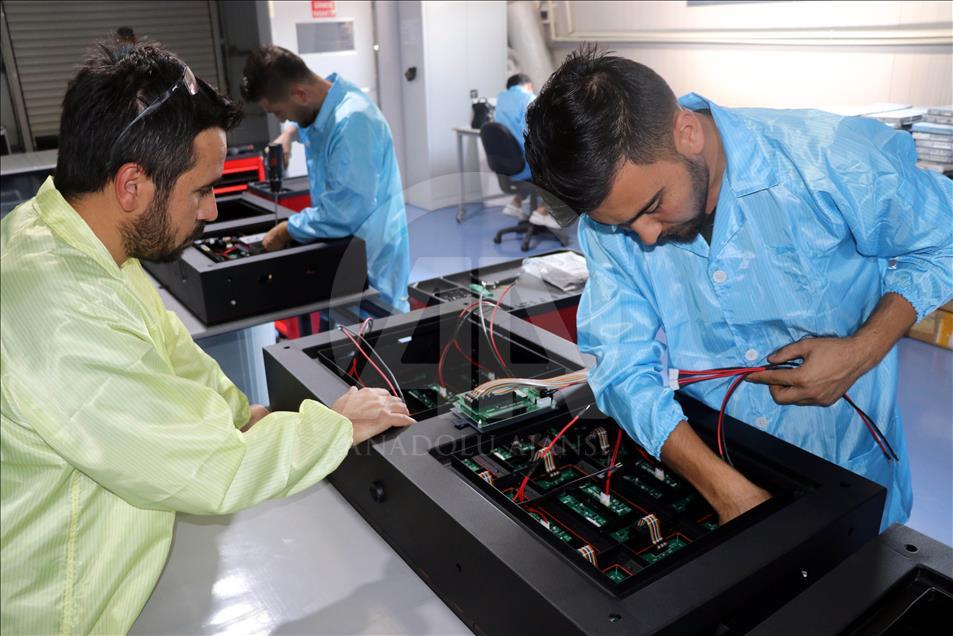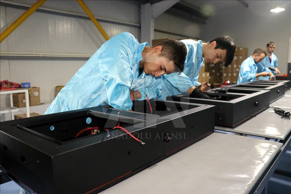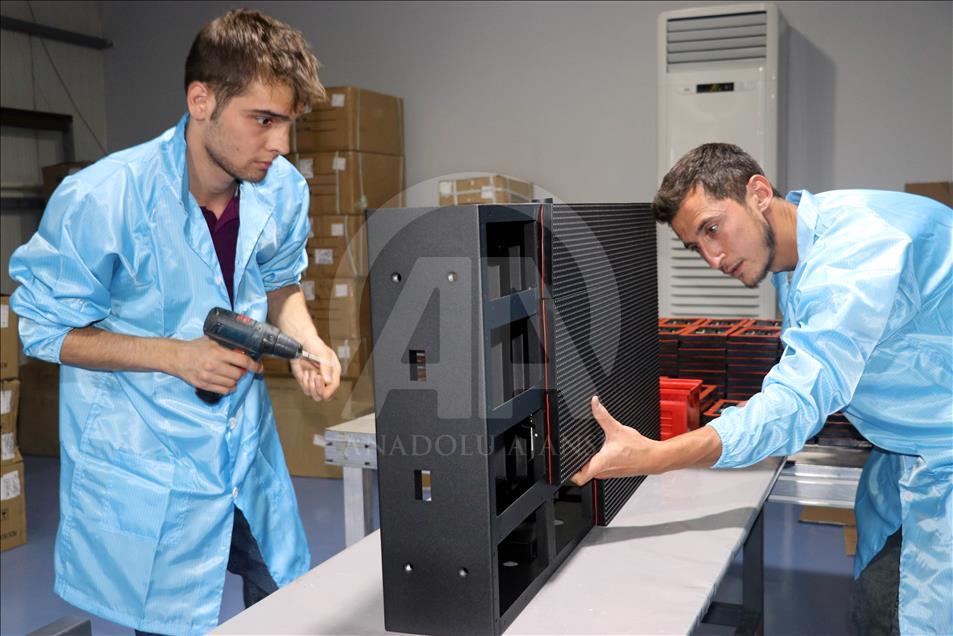 "TAGLIG" markasıyla üretim yapan Türkiye'nin ilk yerli LED (Light Emitting Diode) ekran fabrikası Amasya'daki tesisinde İstanbul Yeni Havalimanı'nda kullanılacak LED ekranları üretiyor. ( Cihan Okur - Anadolu Ajansı )