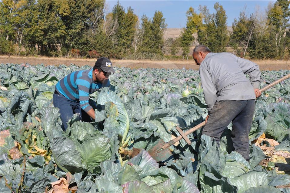 Yozgat'ın Sorgun ilçesine bağlı Burunören köyünde yetiştirilen ve ağırlığı 47 kilograma kadar ulaşan dev lahanaların hasadı yapıldı. Sorgun Milli Eğitim Müdürlüğünden 5 yıl önce emekli olduktan sonra Burunören köyüne dönen İbrahim Aydoğan, pancar ve hububat yerine daha fazla gelir elde edebileceğini düşündüğü lahana üretimine başladı. ( Şahin Özmen - Anadolu Ajansı )Şahin Özmen