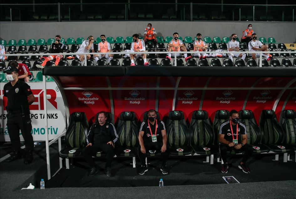 Süper Lig'in 28. haftasında Yukatel Denizlispor ile Beşiktaş, Denizli Atatürk Stadı'nda karşılaştı. Beşiktaş teknik heyeti ile yedek oyuncuları karşılaşmayı, yeni tip koronavirüs (Kovid-19) nedeniyle yapılan yeni düzenlemeye göre kendilerine ayrılan bölümde sosyal mesafe kuralına uyarak takip ettiler. ( Mahmut Serdar Alakuş - Anadolu Ajansı )Mahmut Serdar Alakuş