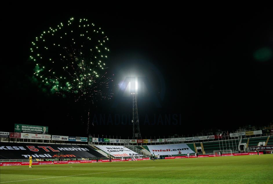 Süper Lig'in 28. haftasında Yukatel Denizlispor ile Beşiktaş, Denizli Atatürk Stadı'nda karşılaştı. Karşılaşma öncesinde stat dışından havai fişekler atıldı. ( Mahmut Serdar Alakuş - Anadolu Ajansı )Mahmut Serdar Alakuş
