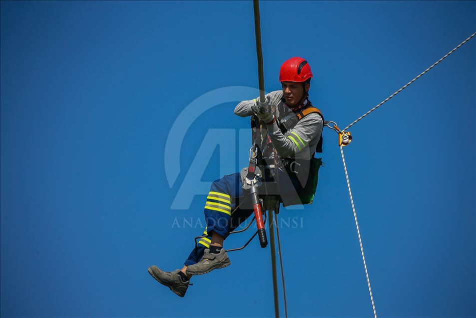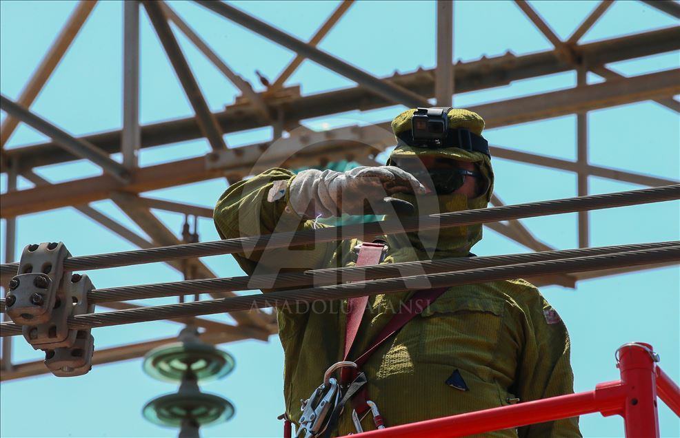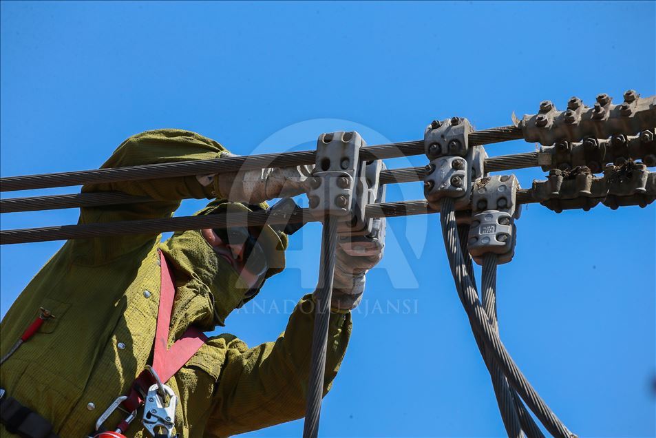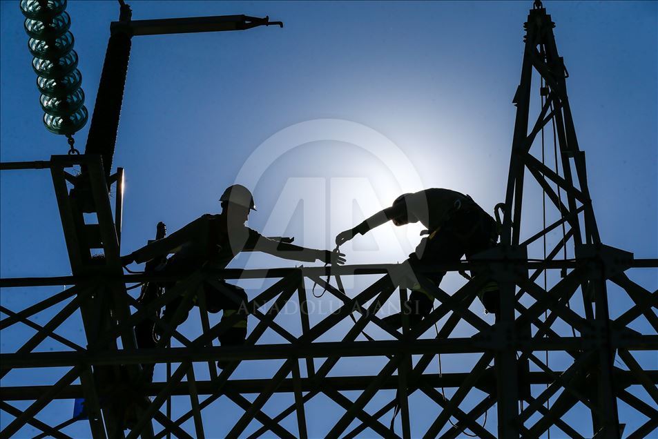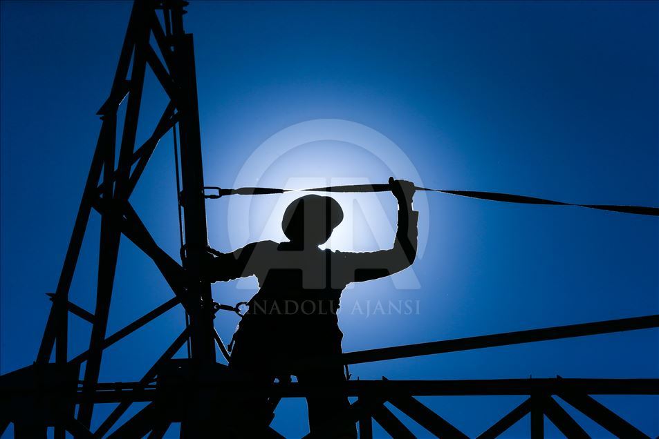 Türkiye'nin enerjisi kesilmesin diye gece gündüz demeden çalışan yüksek gerilim hatlarında çalışan işçiler sıcak havaya rağmen görevlerinin başarıyla sürdürüyor. Metrelerce yükseklikte tel ve direklerin üzerinde birçok riski göze alarak ekmek mücadelesi veren yüksek gerilim işçileri saniyelik elektrik kesintisinin bile büyük ekonomik zararlara yol açtığı hatlarda ekipler kesinti yapmadan canlı bakım yapıyor. ( Emin Mengüarslan - Anadolu Ajansı )Emin Mengüarslan