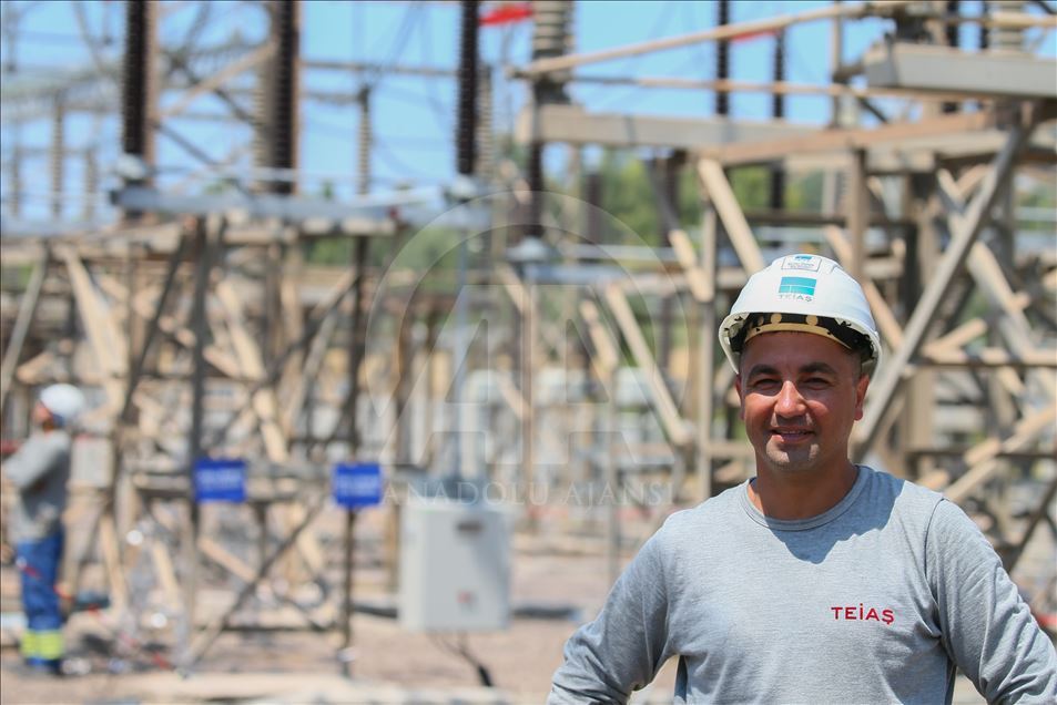Türkiye'nin enerjisi kesilmesin diye gece gündüz demeden çalışan yüksek gerilim hatlarında çalışan işçiler sıcak havaya rağmen görevlerinin başarıyla sürdürüyor. Trafo bakım ekibinden Servet Çakmak (fotoğrafta) ise yüksek gerilim hattında ekip ruhunun çok önemli olduğunu söyledi.