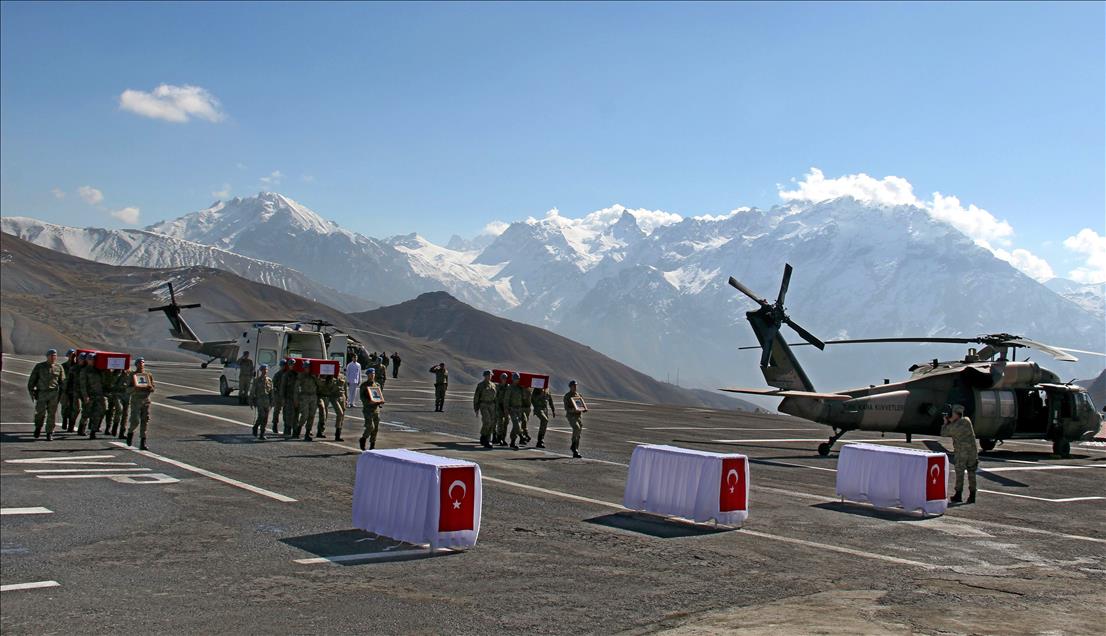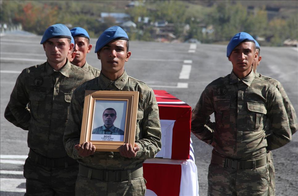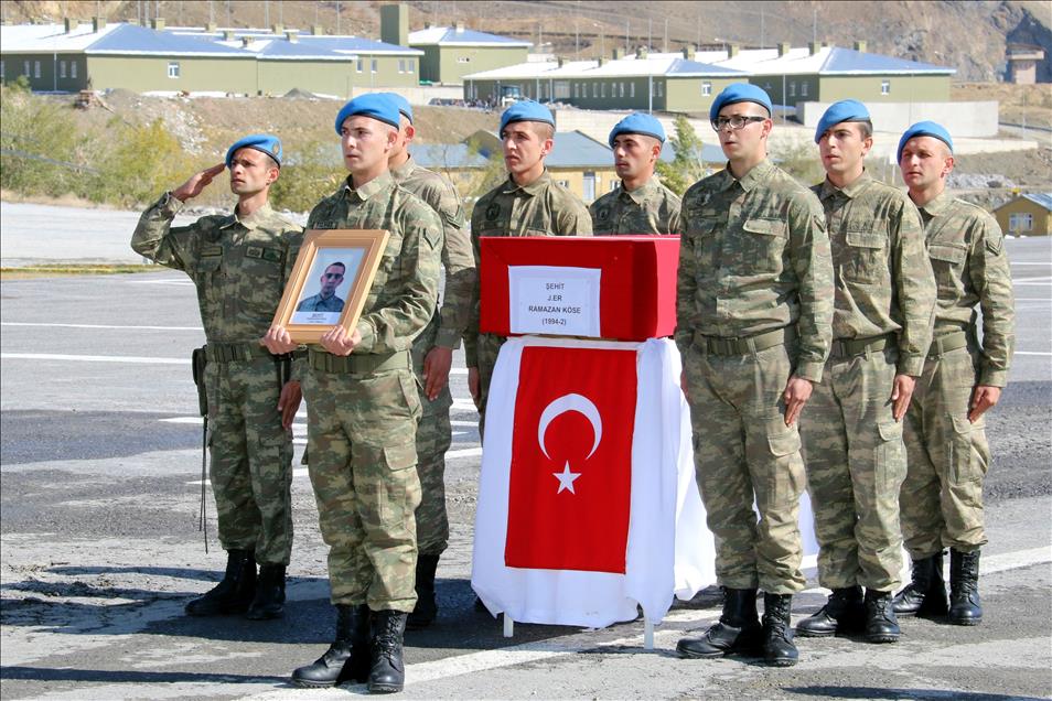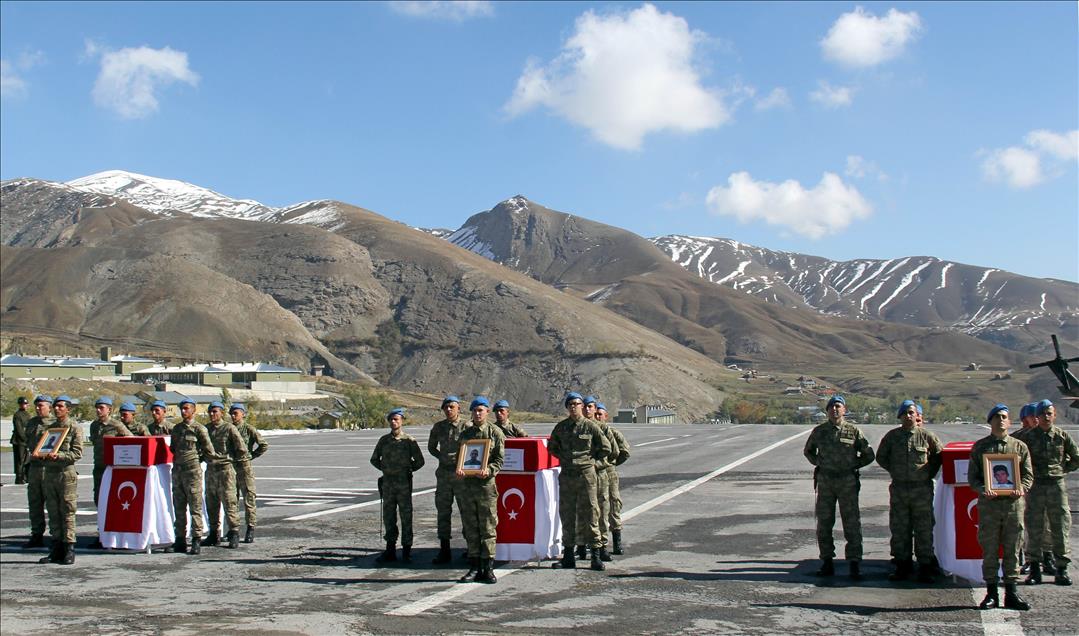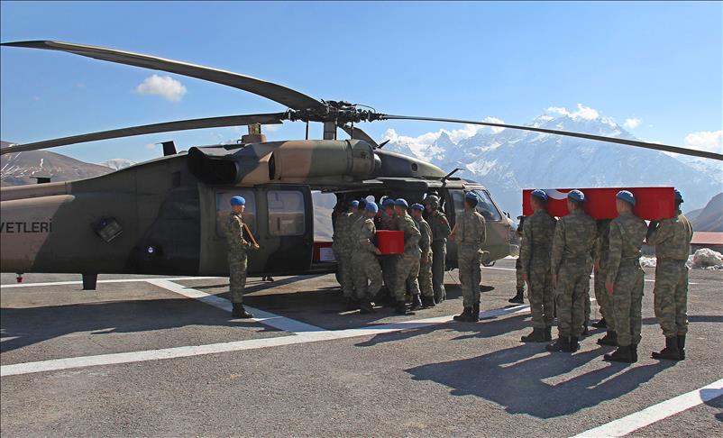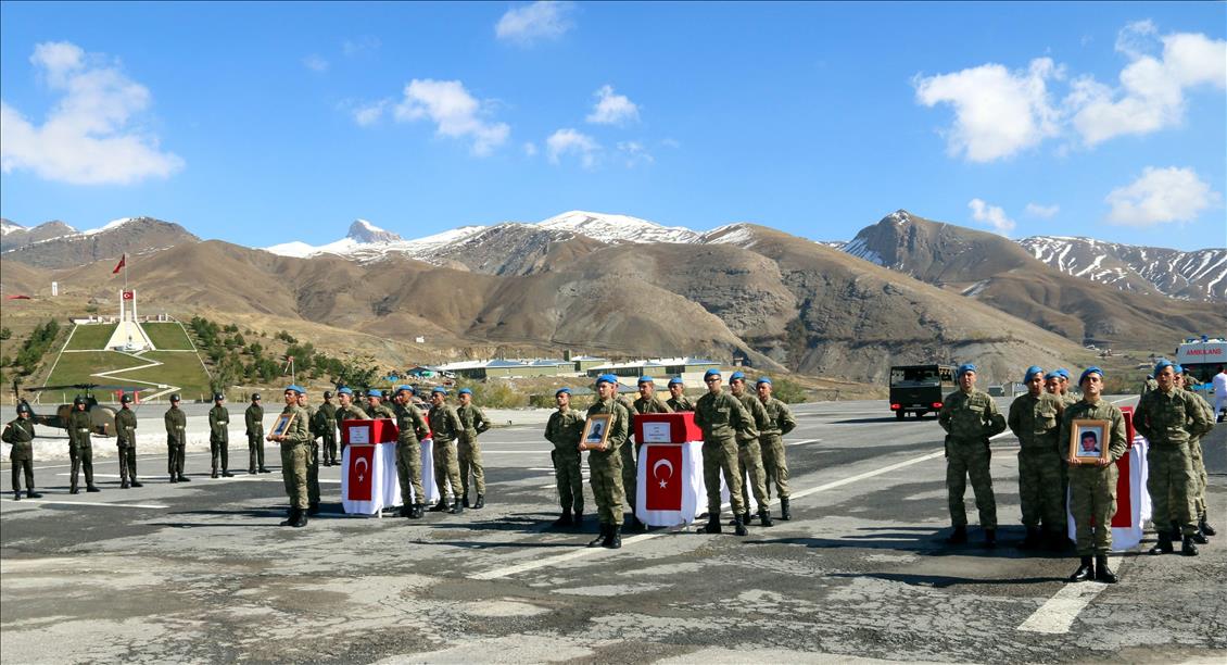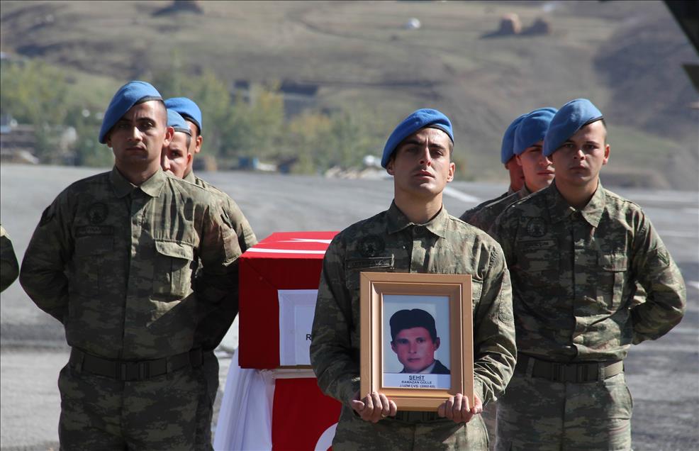 Hakkari'nin Yüksekova ilçesinde terör örgütü mensuplarınca düzenlenen silahlı saldırıda şehit olan 3 askerin cenazesi, Van'a gönderildi. (Yılmaz Kazandıoğlu - Anadolu Ajansı)Yılmaz Kazandıoğlu