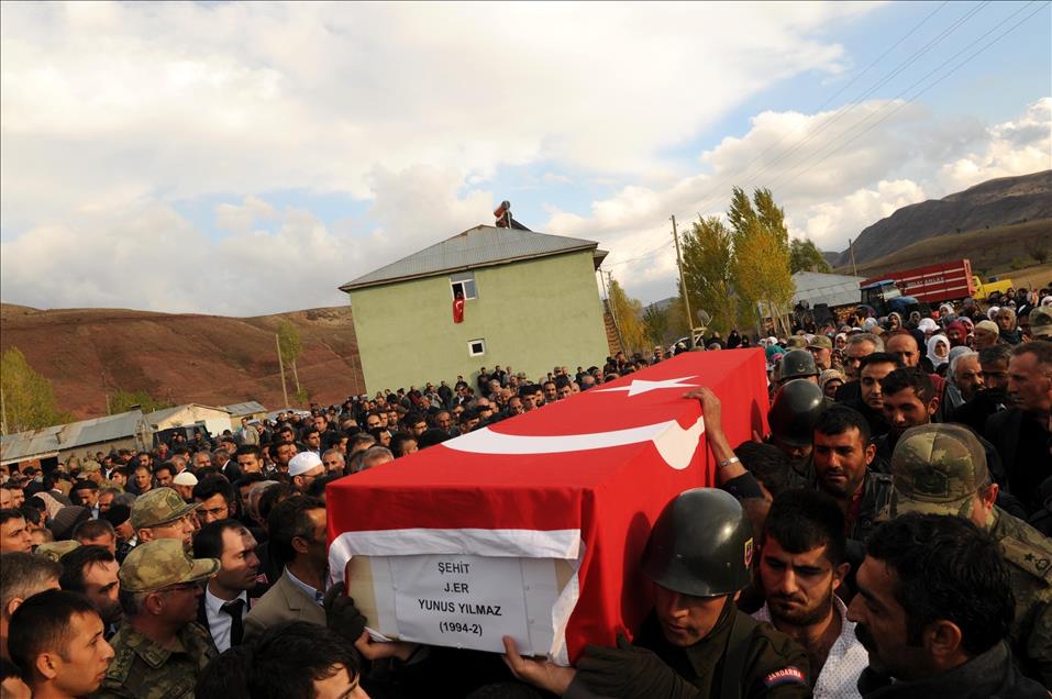 Hakkari'nin Yüksekova ilçesinde terör örgütü mensuplarınca düzenlenen silahlı saldırıda şehit olan Jandarma Er Yunus Yılmaz, memleketi Bingöl'ün Karlıova ilçesine bağlı Dörtyol köyünde toprağa verildi (Abdullah Çelik - Anadolu Ajansı)Abdullah Çelik