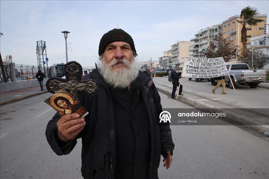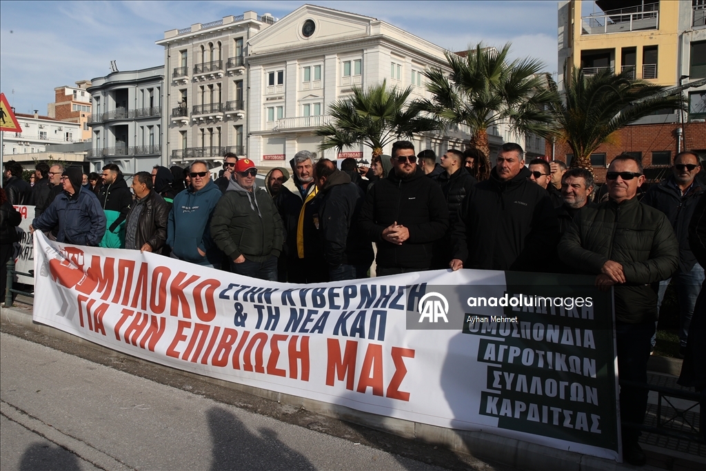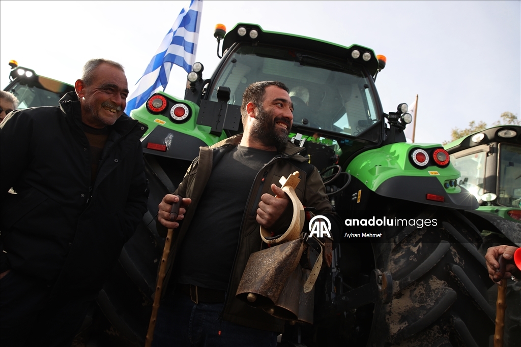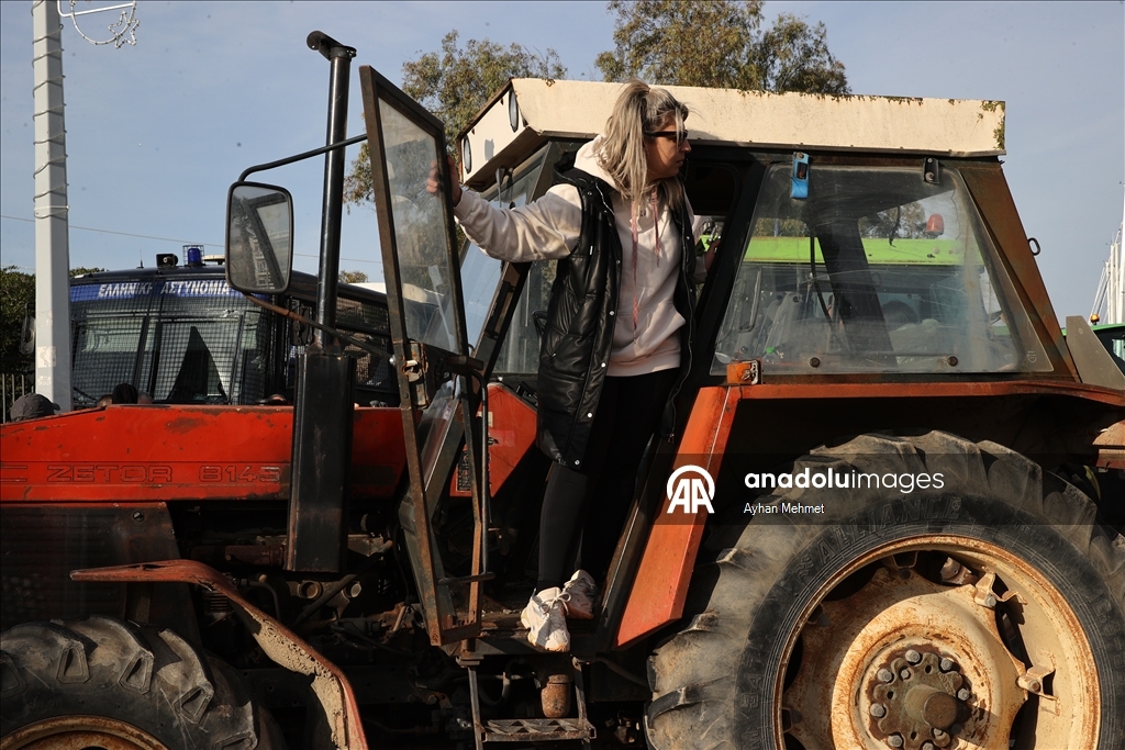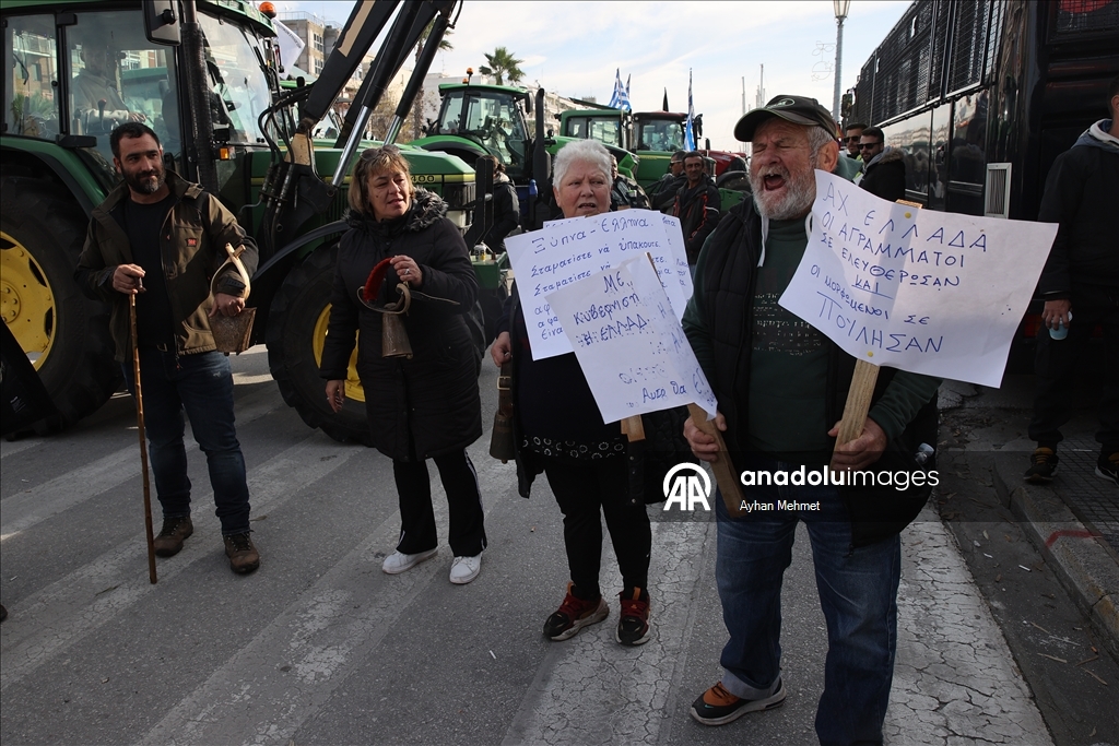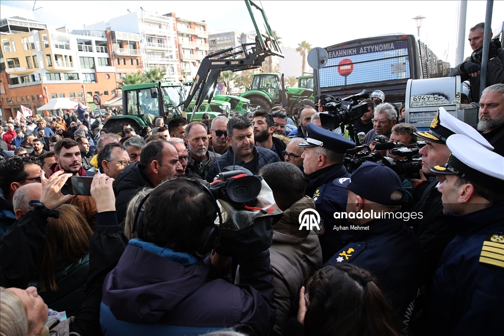 Yunanistan’da tarım sektörüne yönelik protestolar kapsamında Volos kentinin limanında bir araya gelen çok sayıda çiftçi ve hayvancı, traktörlerle limanın ana girişlerini kapattı.