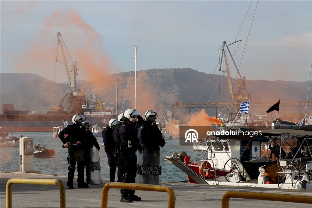 Yunanistan'da çiftçiler, Volos Limanı'nı ulaşıma kapattı