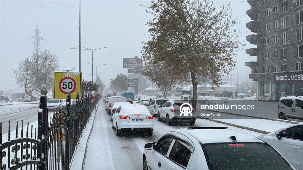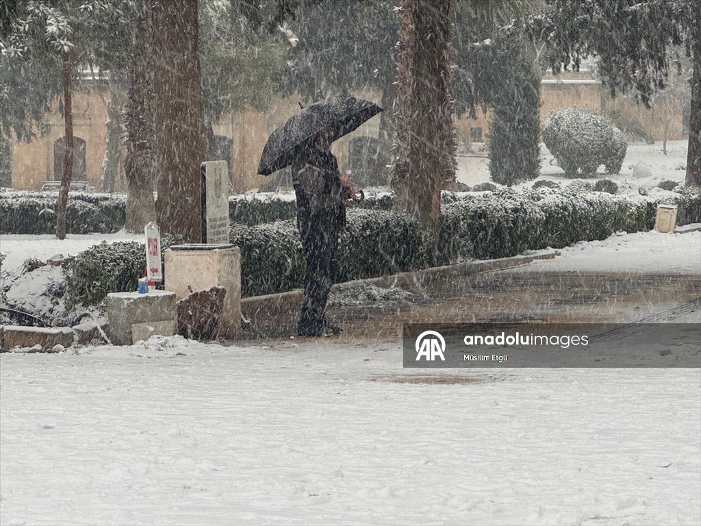 Şanlıurfa'da sabah başlayan kar hayatı olumsuz etkiledi. (Müslüm Etgü - Anadolu Ajansı)Müslüm Etgü